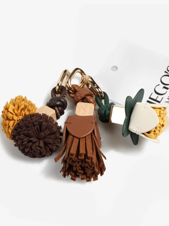Stylowe przywieszki w formie breloka wykonane ze skóry i tkaniny.To idealny dodatek dla osób ceniących sobie detale i oryginalne akcenty w codziennych stylizacjach.Sprawdzi się jako ozdoba do butów, kluczy, zamka w torebce, plecaka czy nawet telefonu. Niewielki detal, który wyróżni Cię z tłumu!