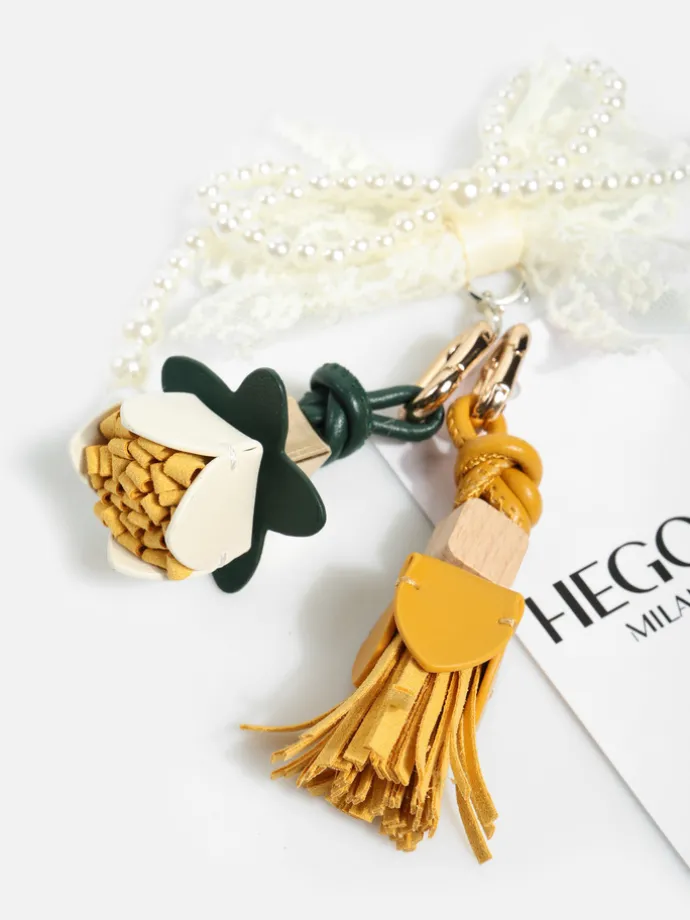 Stylowe przywieszki w formie breloka wykonane ze skóry i tkaniny.To idealny dodatek dla osób ceniących sobie detale i oryginalne akcenty w codziennych stylizacjach.Sprawdzi się jako ozdoba do butów, kluczy, zamka w torebce, plecaka czy nawet telefonu. Niewielki detal, który wyróżni Cię z tłumu!
