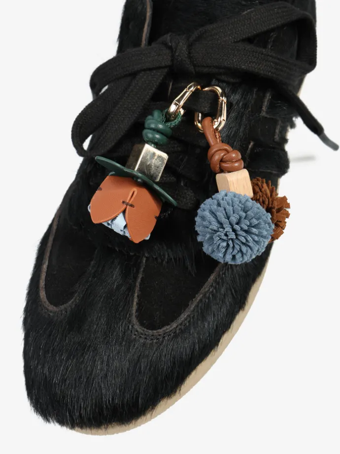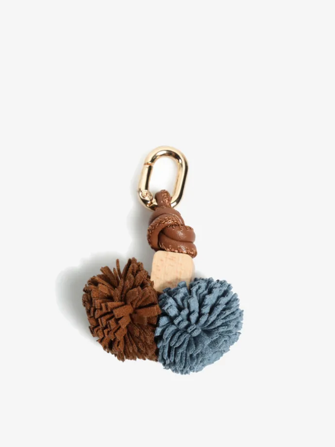 Stylowa przywieszka w formie breloka wykonana ze skóry i tkaniny,ozdobiona pomponami.To idealny dodatek dla osób ceniących sobie detale i oryginalne akcenty w codziennych stylizacjach. Sprawdzi się jako ozdoba do butów, kluczy, zamka w torebce, plecaka czy nawet telefonu. Niewielki detal, który wyróżni Cię z tłumu!