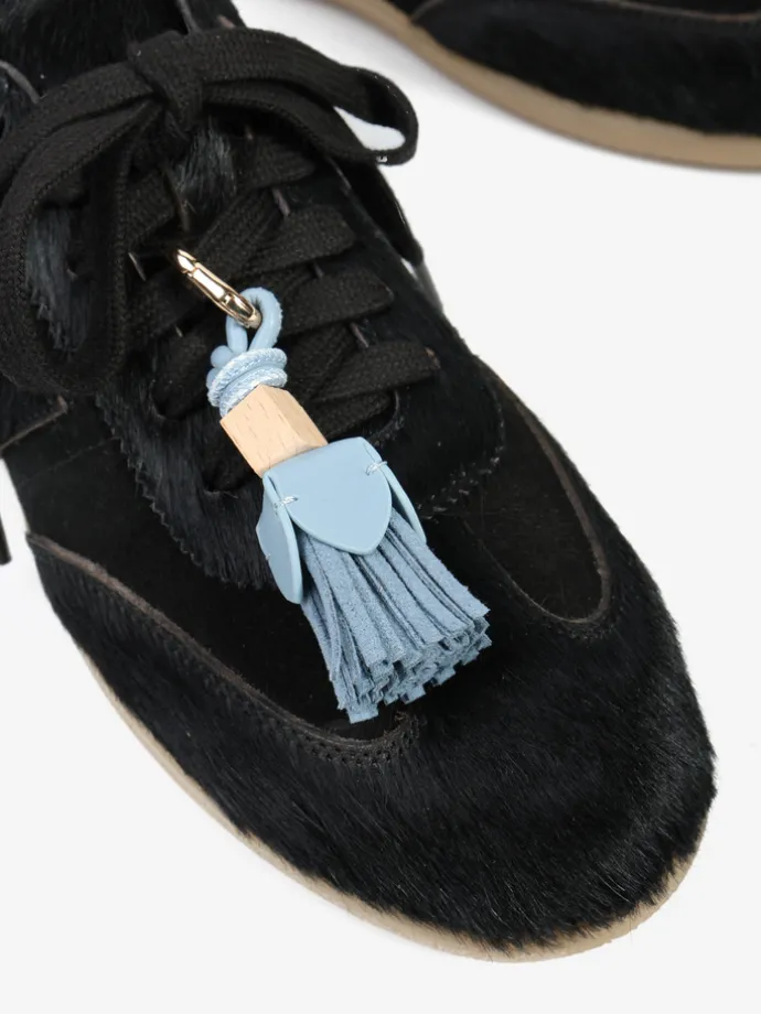 Stylowa przywieszka w formie breloka wykonana ze skóry i tkaniny.To idealny dodatek dla osób ceniących sobie detale i oryginalne akcenty w codziennych stylizacjach.Sprawdzi się jako ozdoba do butów, kluczy, zamka w torebce, plecaka czy nawet telefonu. Niewielki detal, który wyróżni Cię z tłumu!