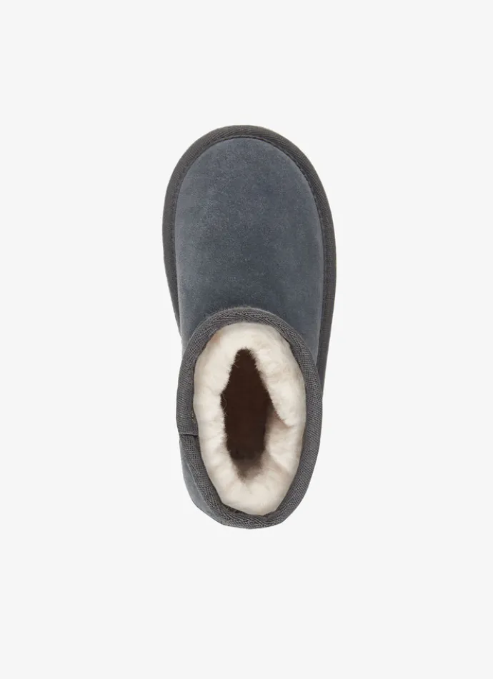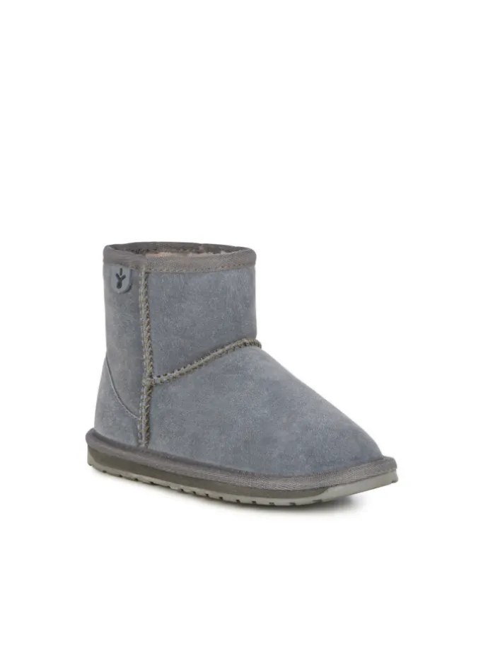 EMU Australia Wallaby Mini Teens to model wykonany najwyżej jakości skóry zamszowej. Wnętrze jest podszyte wełną z australijskich owiec merynosów o oddychających właściwościach. Warto zaimpregnować buty przed pierwszym spacerem preparatem do naturalnego zamszu i nubuku, dzięki temu będą odporne na zachlapania i wilgoć.Materiały użyte w modelu Wallaby Mini utrzymują stopy w cieple nawet przy temperaturze -30°C oraz chłodzą je w te cieplejsze. Ważną zaletą wełny jest to, że nie przegrzewa stóp, dając poczucie komfortu w każdej temperaturze. Skóra na pięcie jest specjalnie wyprofilowana dla lepszego wsparcia, dopasowania i utrwalenia fasonu.