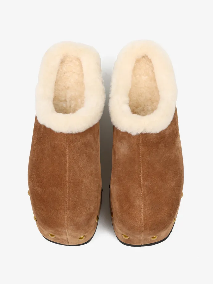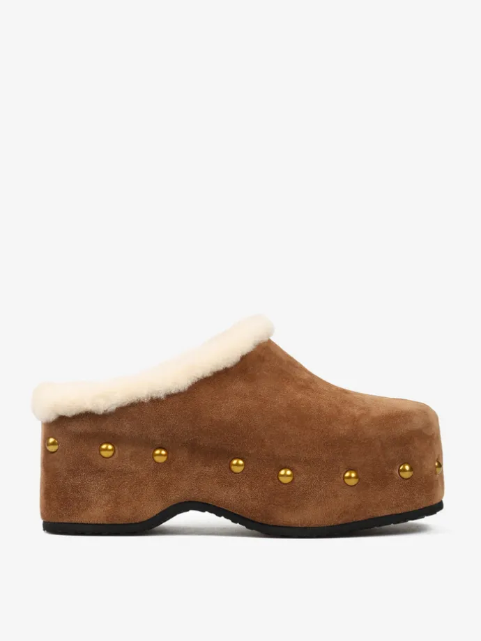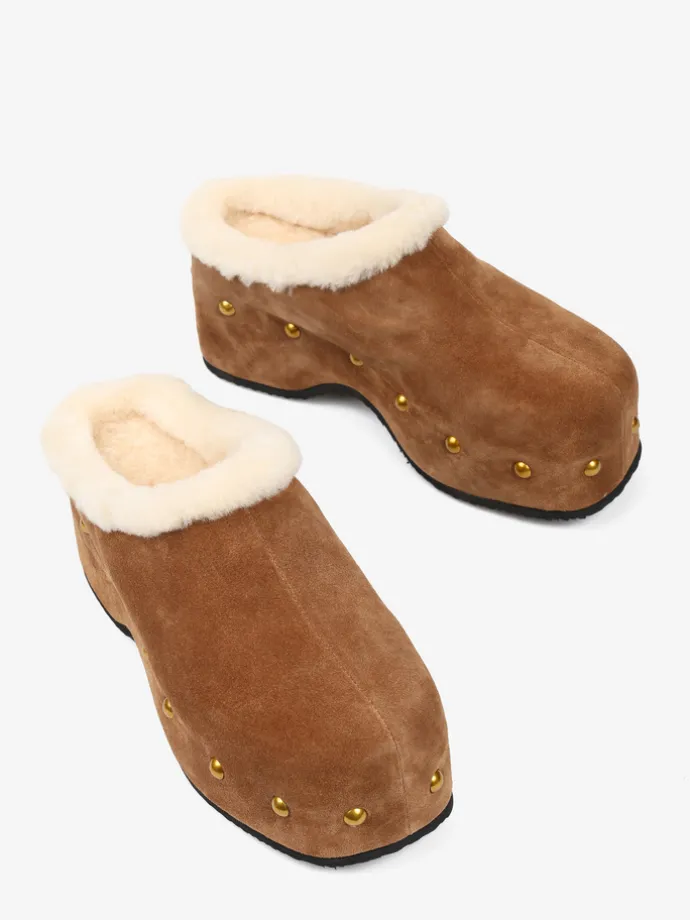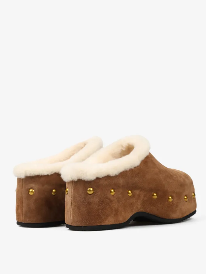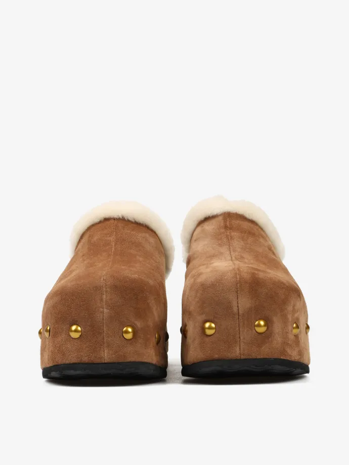 Chodaki na platformie z ozdobnymi ćwiekami. Wyściółka z naturalnej wełny owczej.
