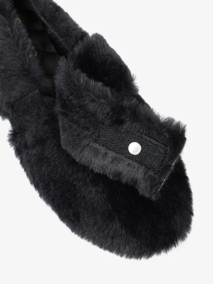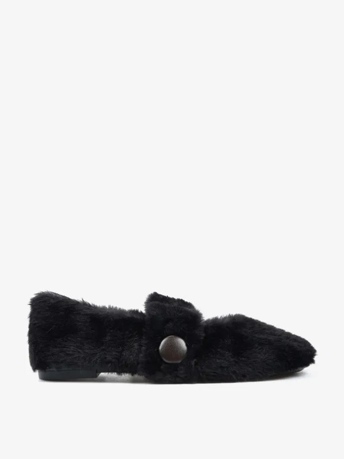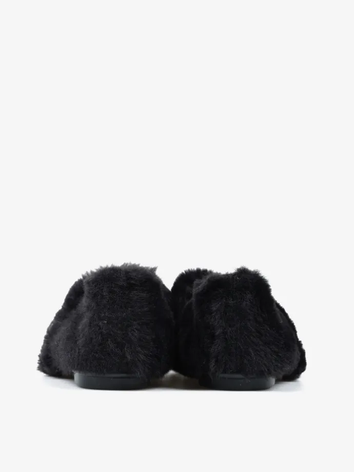 Czarne baleriny wykonane z miękkiego, sztucznego futra. Zapinanie na rzep.