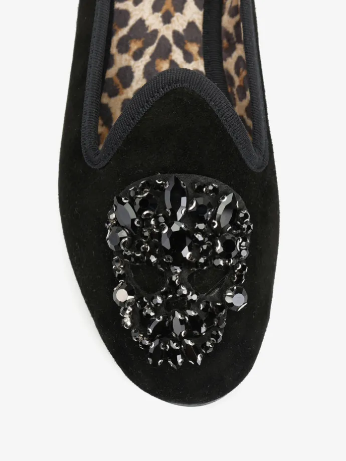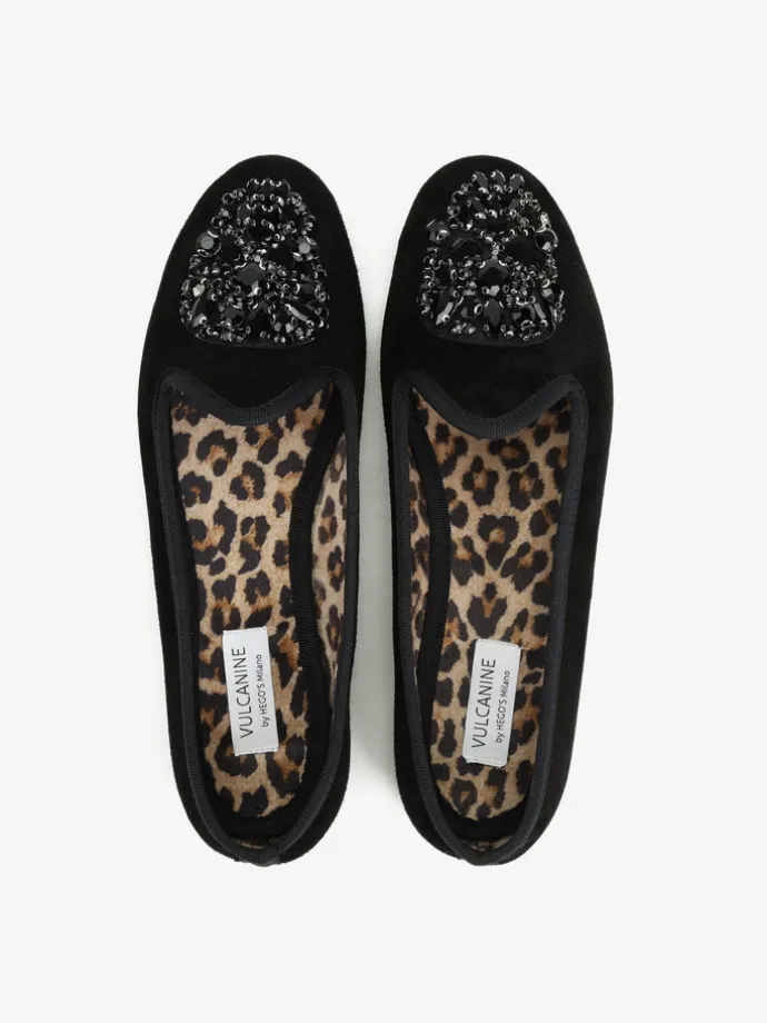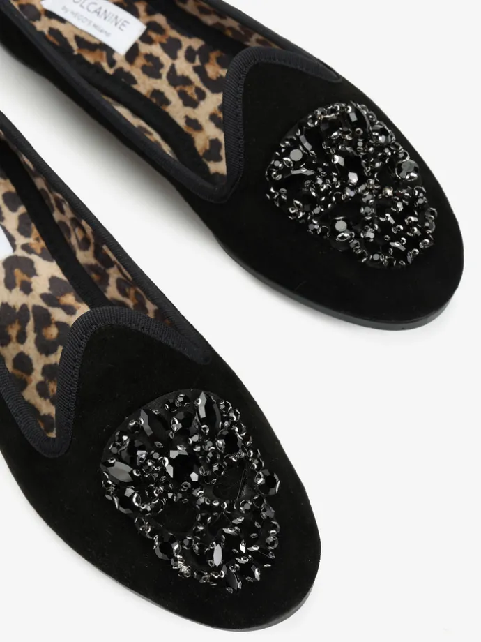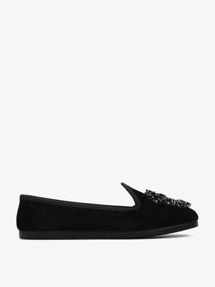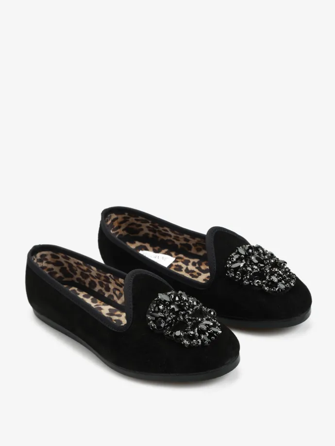 Miękkie, zamszowe baleriny z biżuteryjną aplikacją.
