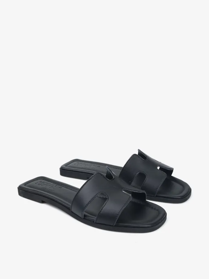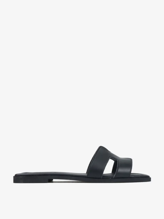 Modne, czarne klapki wykonane z miękkiej i delikatnej skóry.