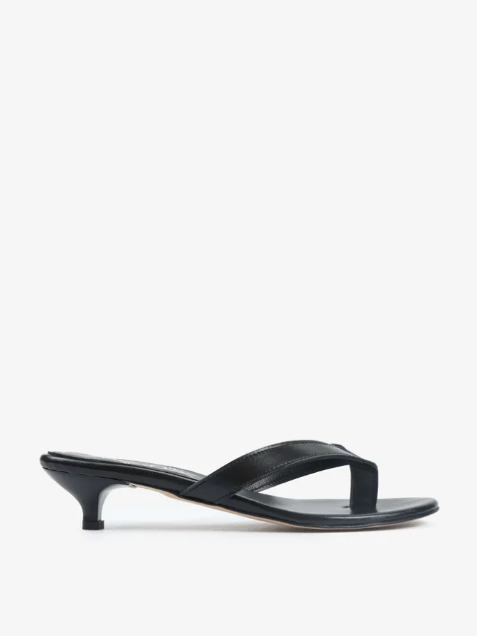HIT SEZONU! Minimalistyczne, czarne japonki na niskiej szpilce z gładkim, skórzanym paskiem. Idealne do letnich stylizacji i wieczornych wyjść.