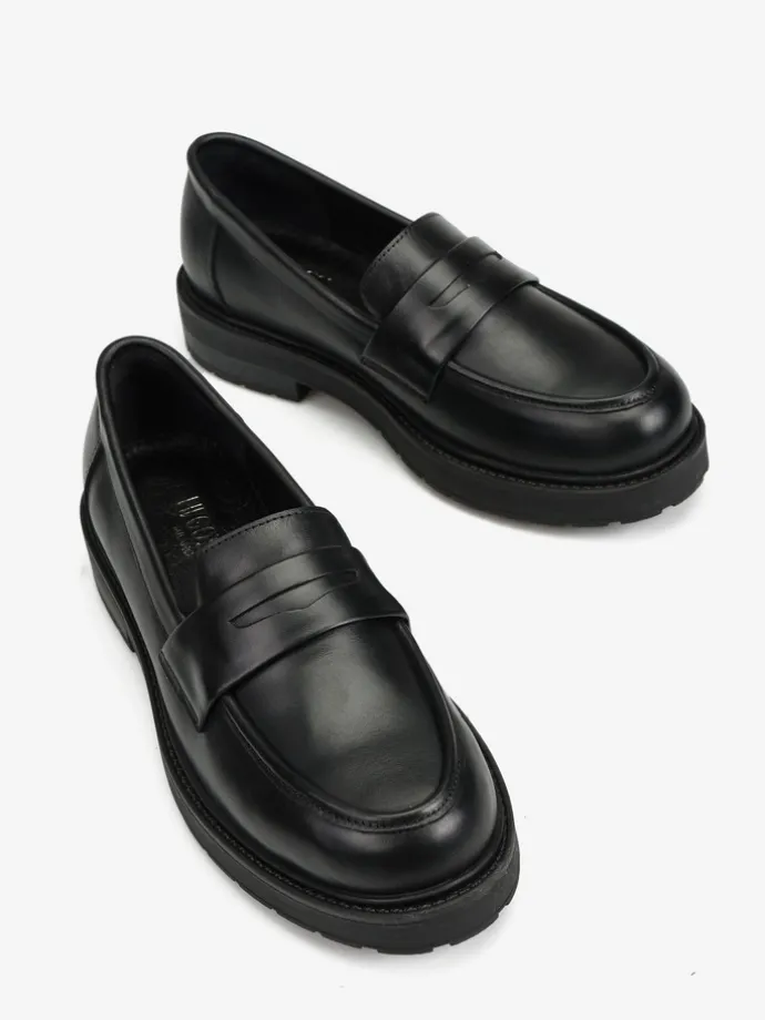 Klasyczne mokasyny z ozdobną patką, na grubszej podeszwie.