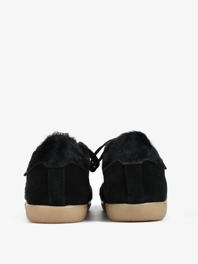Autorskie sneakersy sygnowane literą H, wykonane z zamszu i naturalnej skóry z włosiem. Przywieszka dostępna oddzielnie.