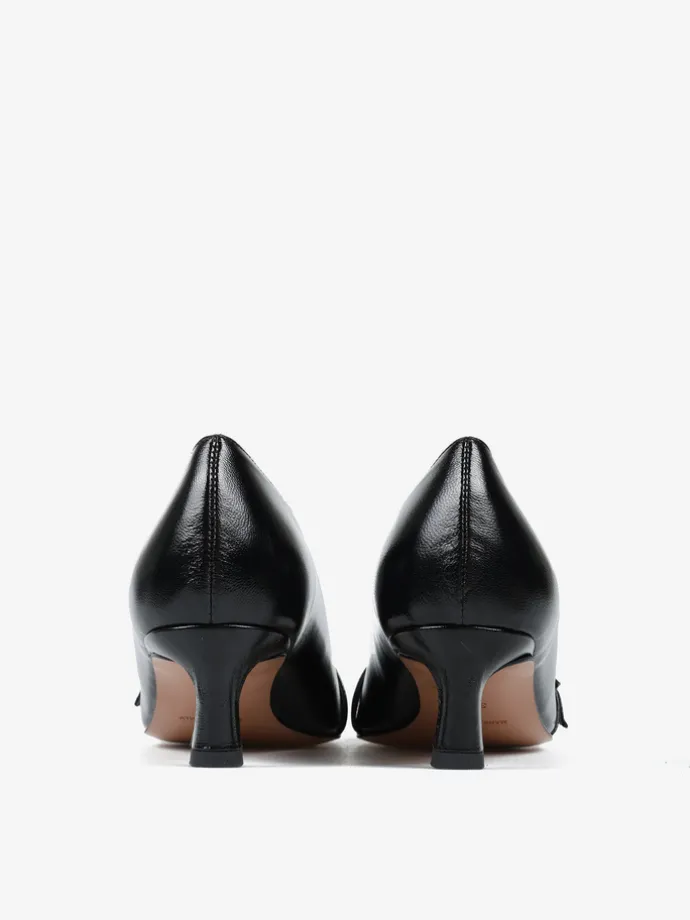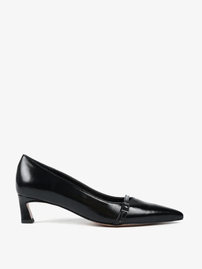Eleganckie szpilki wykonane ze skóry lakierowanej. Nosek w szpic z ozdobnym paseczkiem.
