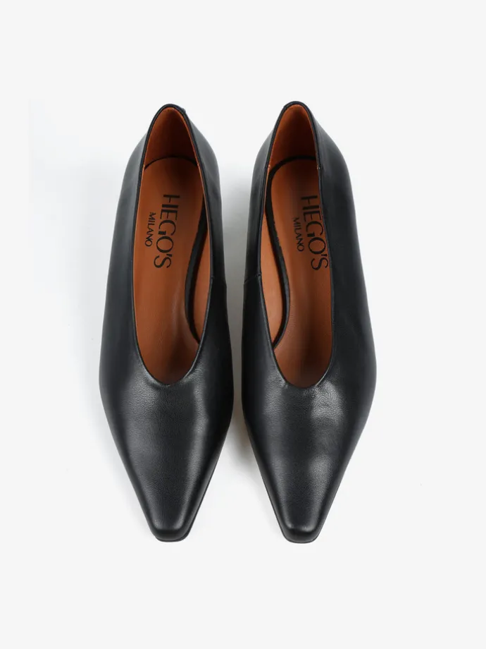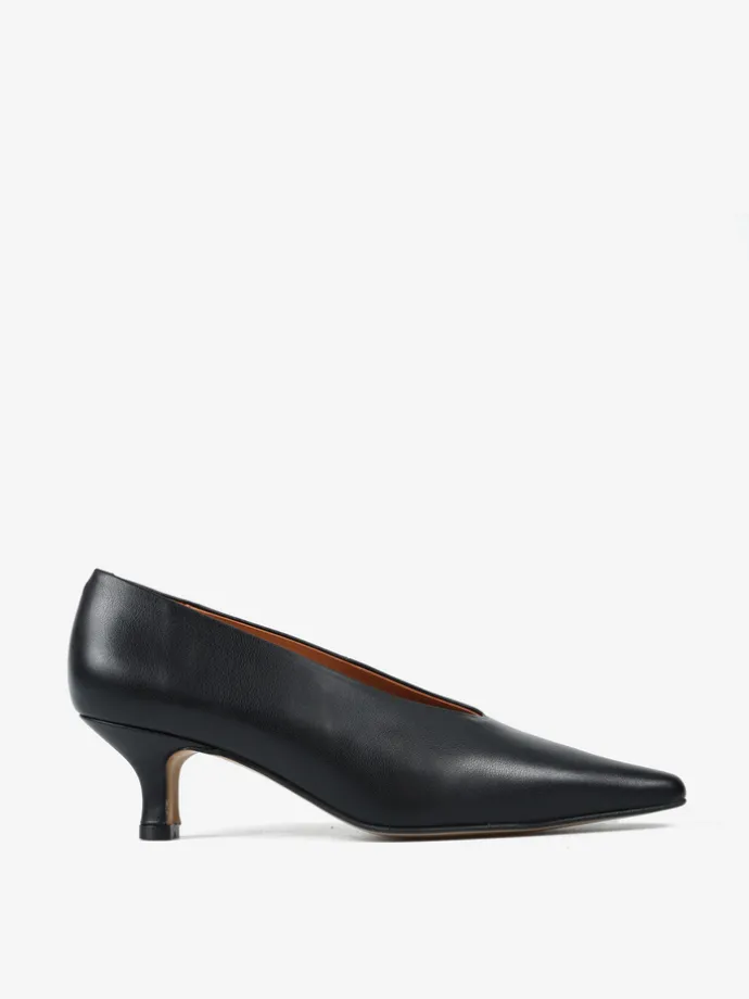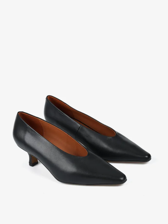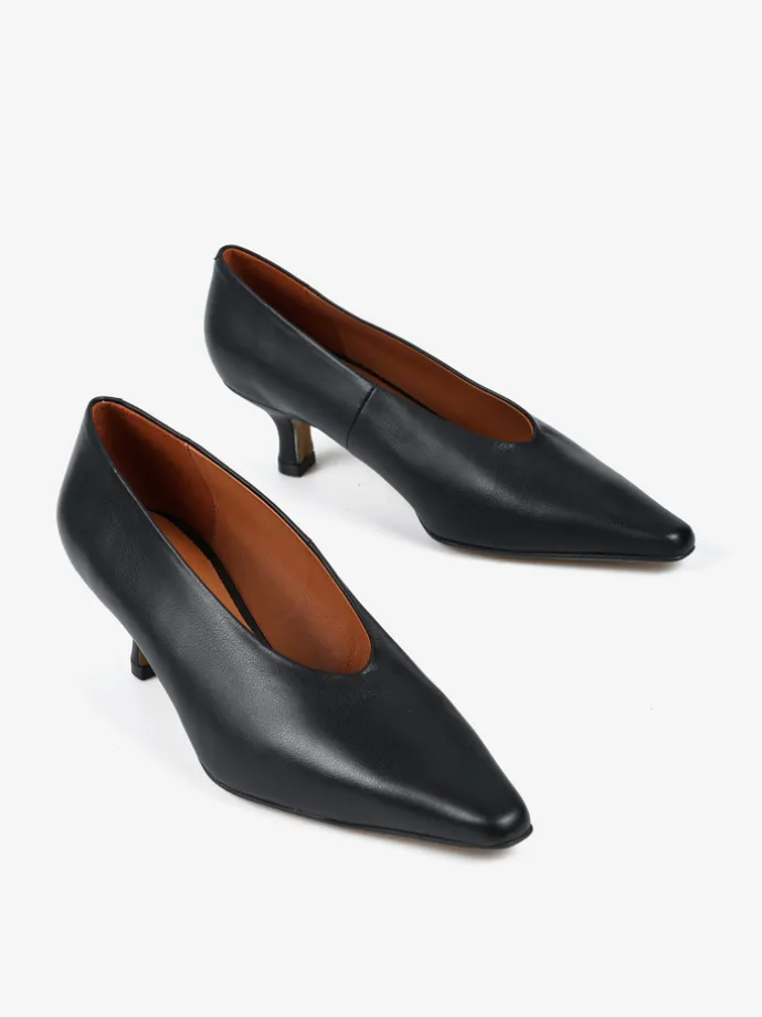 Proste szpilki z noskiem w szpic, wykonane z miękkiej i delikatnej skóry. Owalne wycięcie z zabudowanymi brzegami.