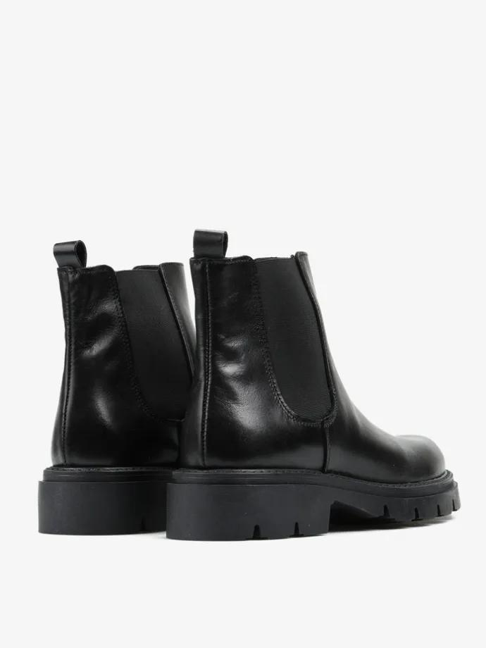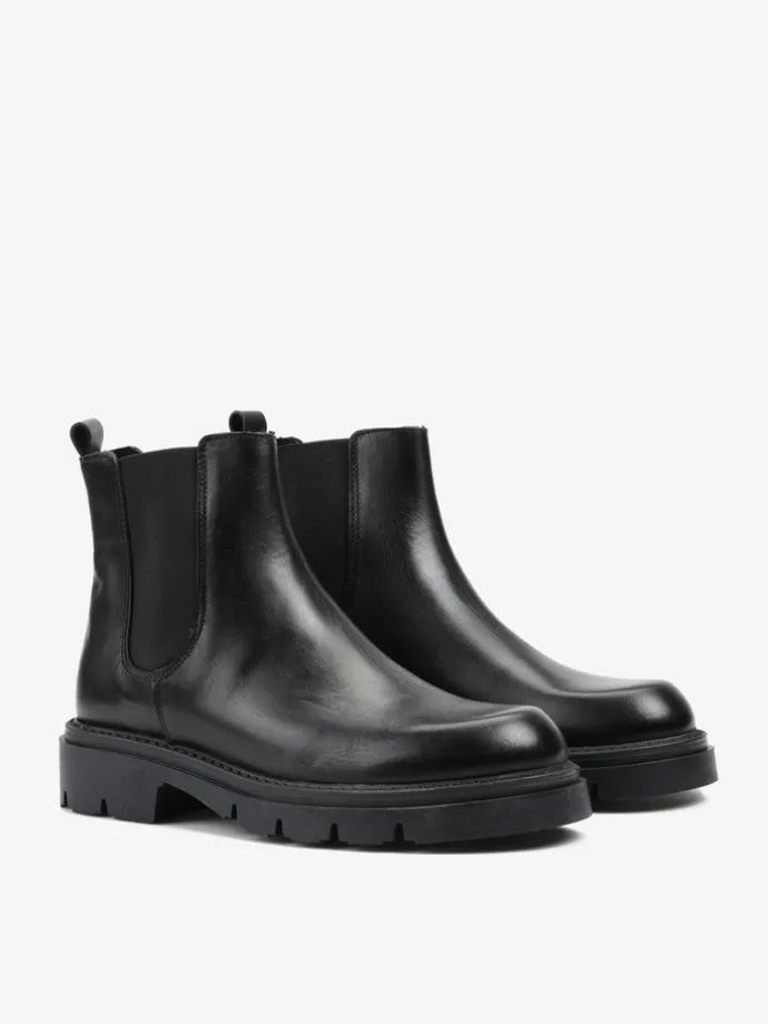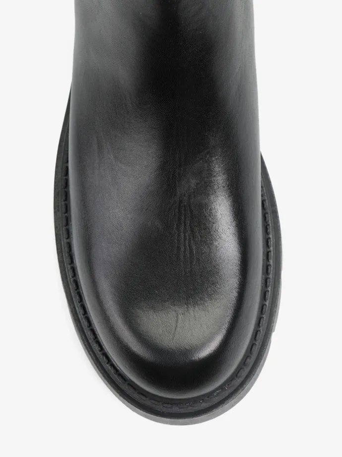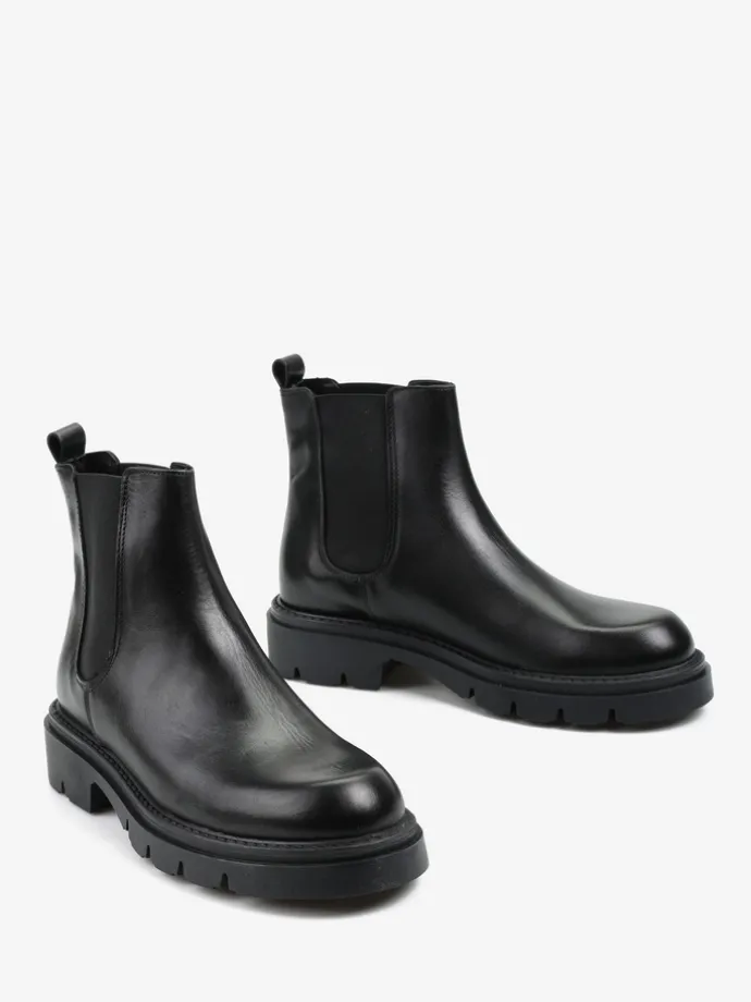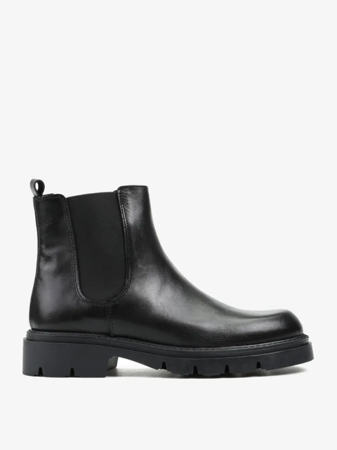 Klasyczne, skórzane sztyblety z okrągłymi noskami na grubszej podeszwie.
