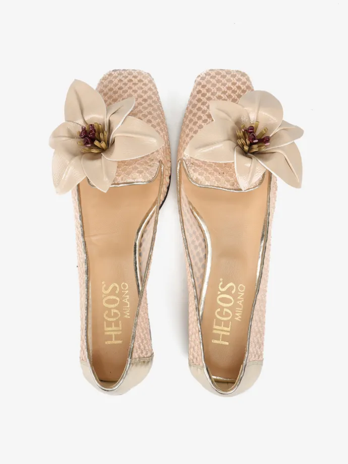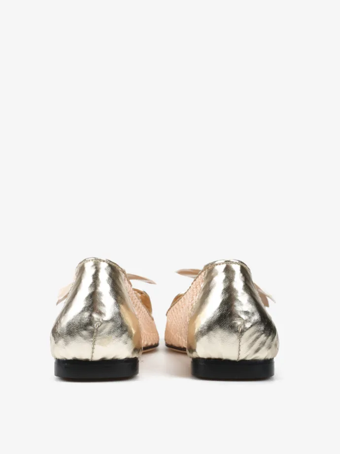 Baleriny z przewiewnej siateczki z ozdobnym kwiatem. Skórzana pięta.
