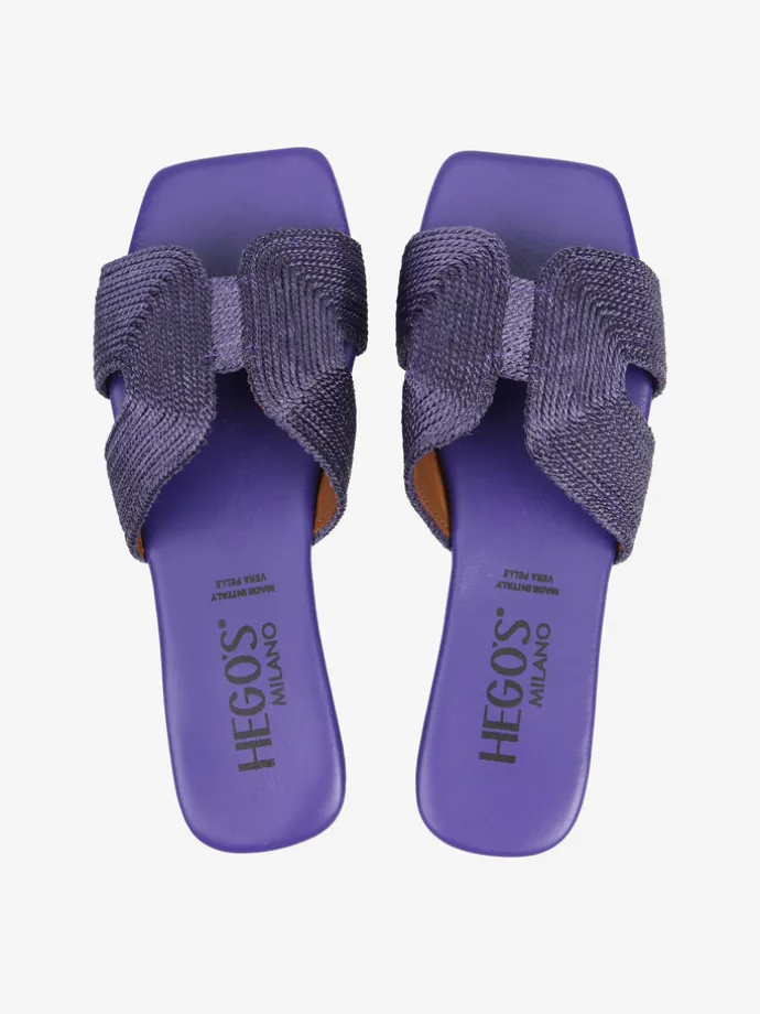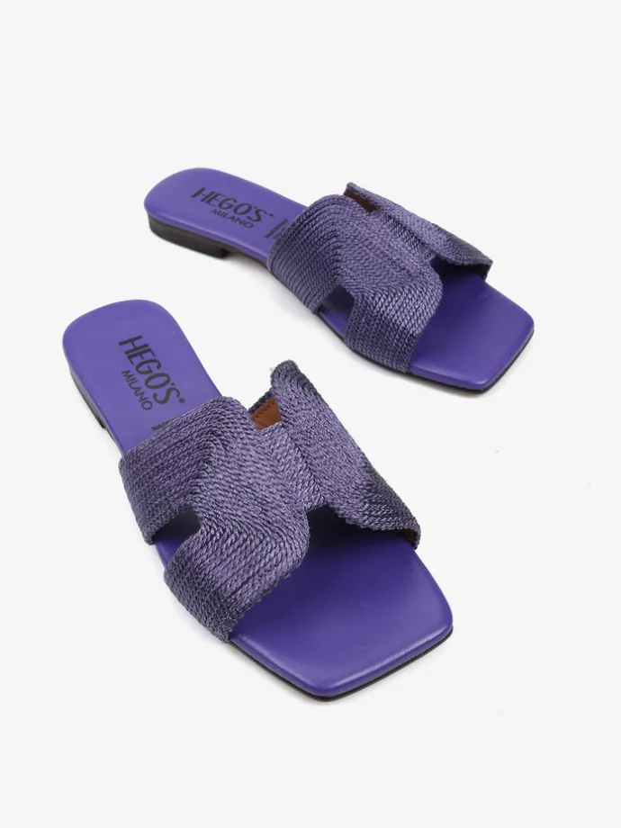 Modne klapki na płaskiej podeszwie z paskiem wykonanym ze sznurka.