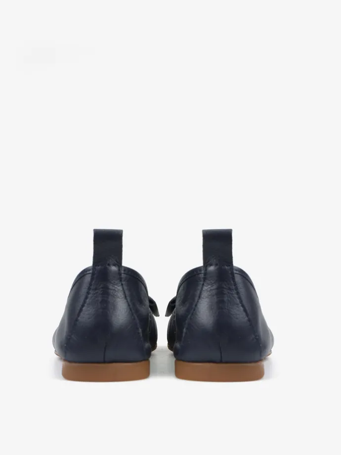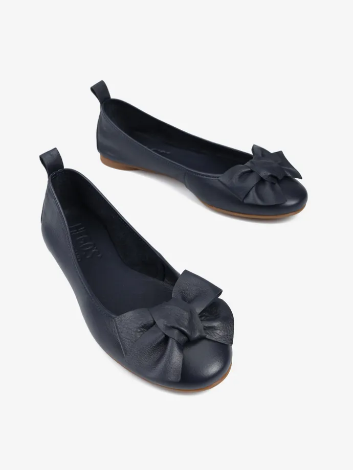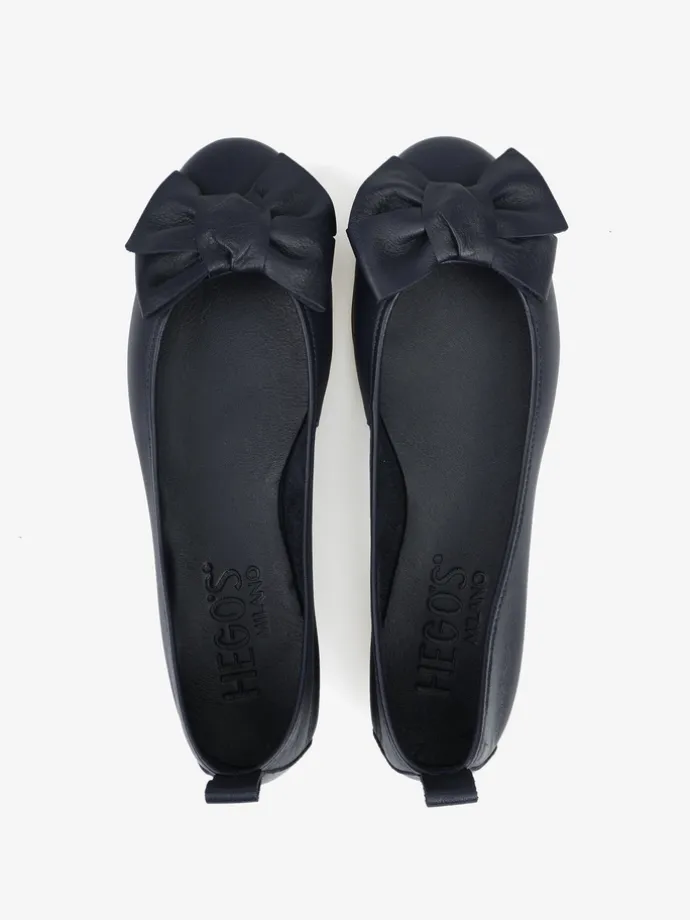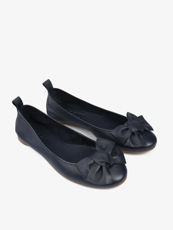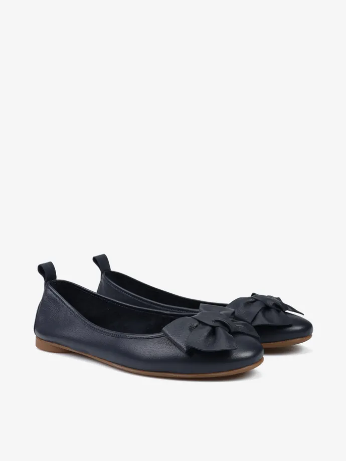 Baleriny wykonane z delikatnej, miękkiej skóry. Okrągły nosek ze skórzaną kokarda.