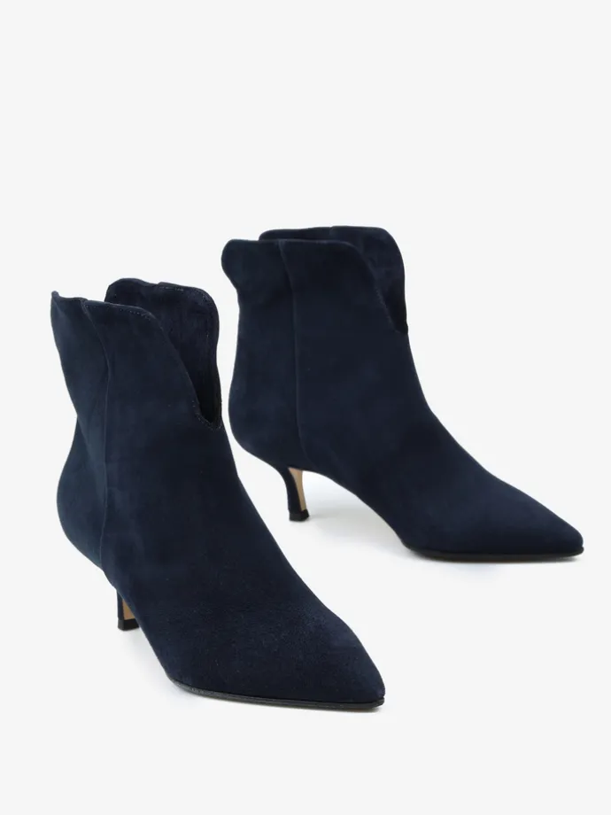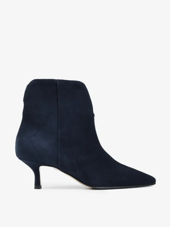 Botki na niskim obcasie to minimalistczny model dla eleganckich kobiet. Wsuwana cholewka wykonana jest z naturalnej skóry zamszowej. Model z noskiem w szpic oraz wygodnym obcasem na szpilce. Botki damskie będą uzupełnieniem nie tylko casualowych stylizacji.