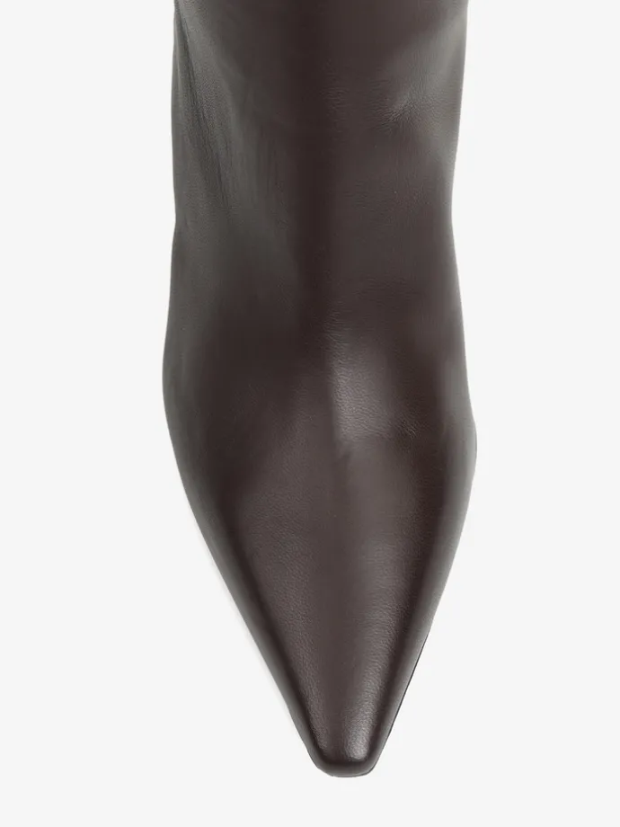 Wsuwane kozaki na szpilce, wykonane z miękkiej i delikatnej skóry. Noski w szpic.