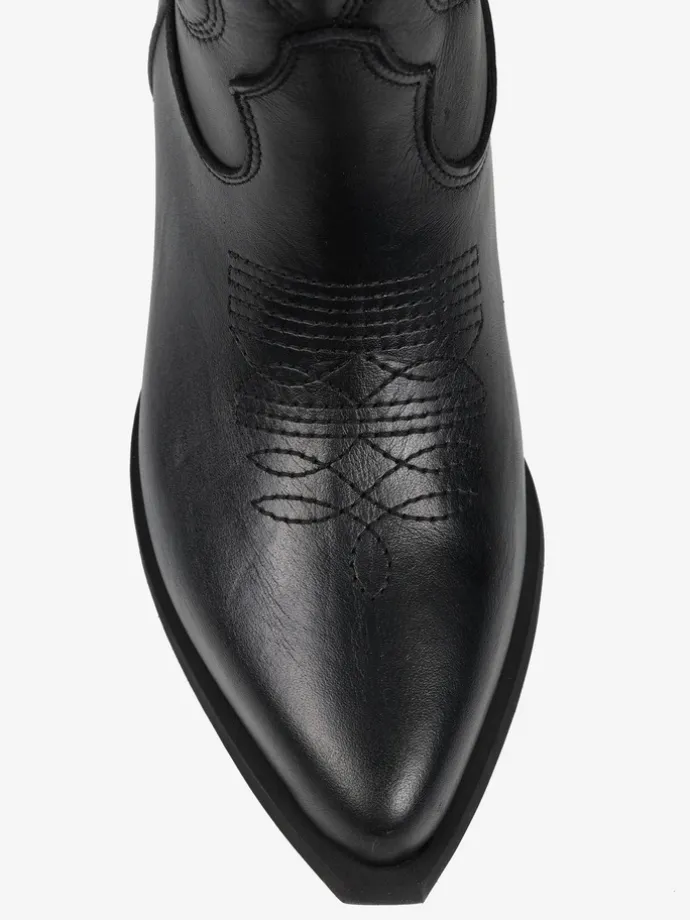 Klasyczne kowbojki z noskami w szpic i monochromatycznym haftem.