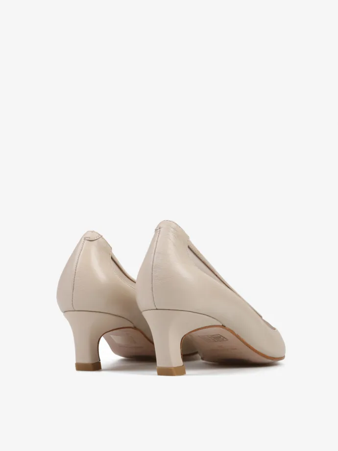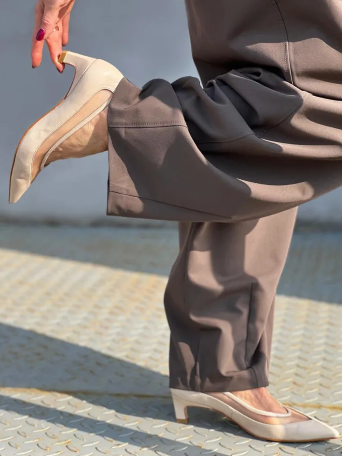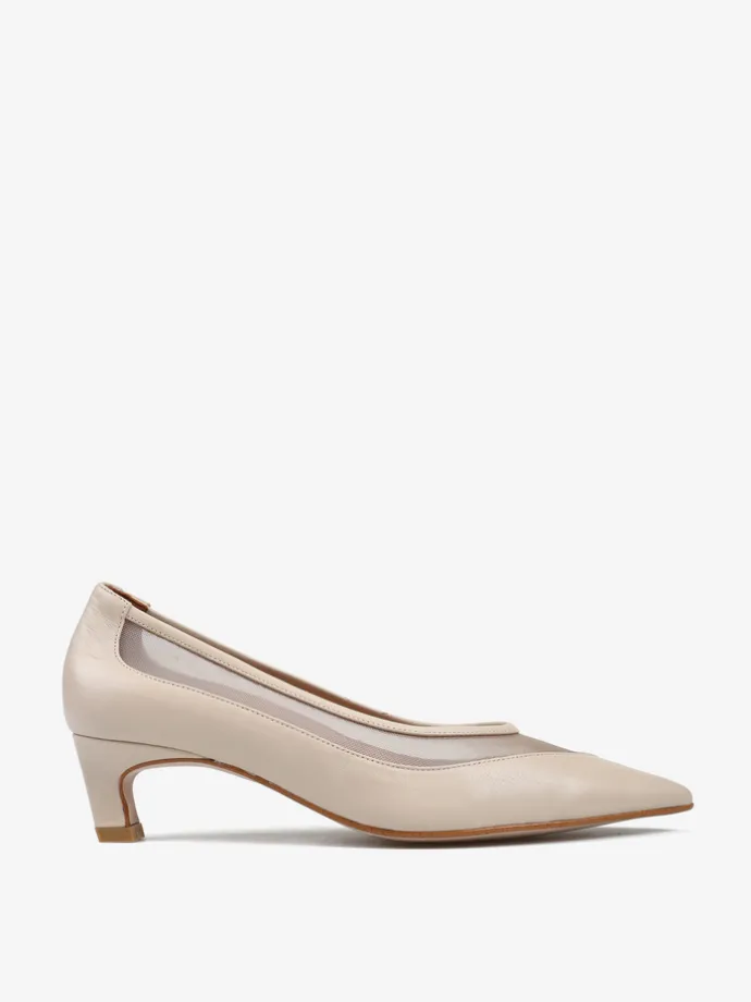 Szpilki z noskiem w szpic z przeszyciem wykonanym z przewiewnej siateczki. Skórzana lamówka.