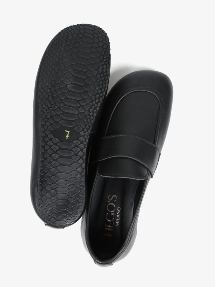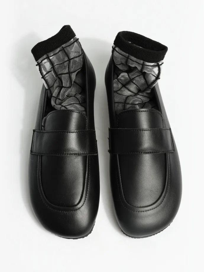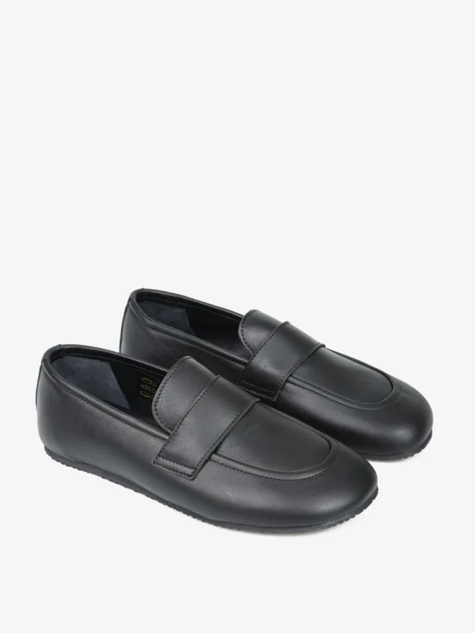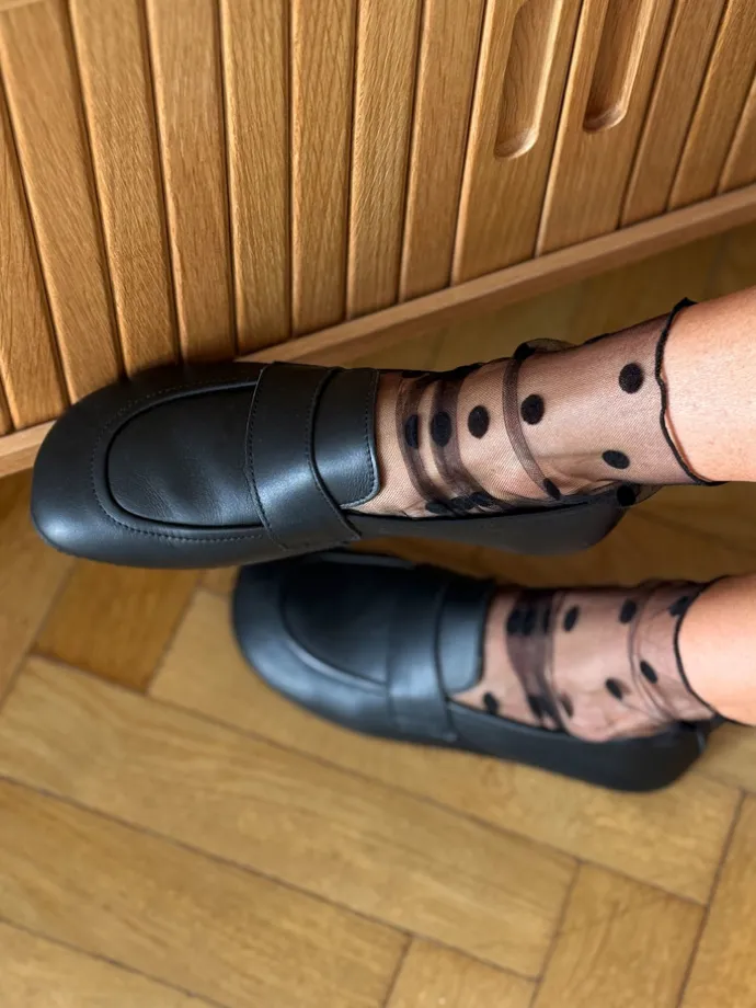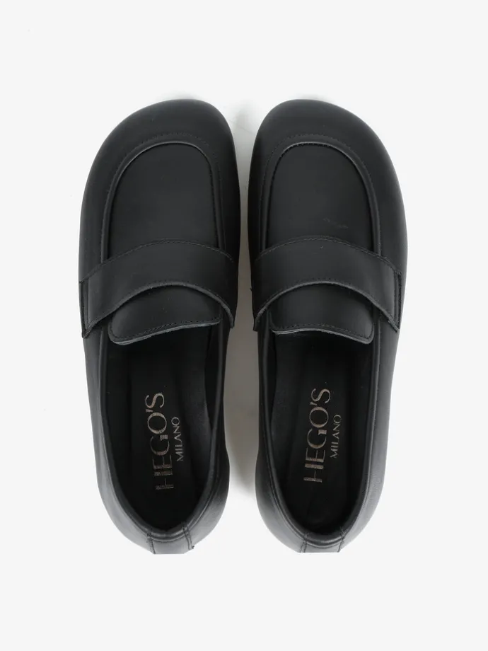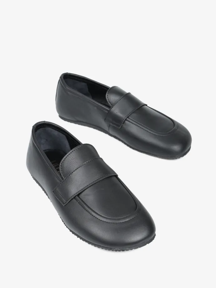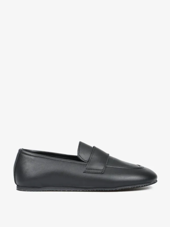 Minimalistyczne mokasyny na płaskiej podeszwie.