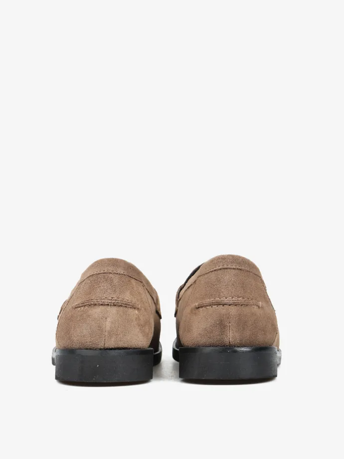 Klasyczne, zamszowe, bardzo lekkie mokasyny z ozdobną patką.
