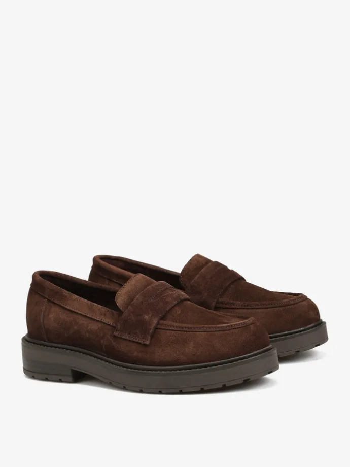 Klasyczne mokasyny z ozdobną patką, na grubszej podeszwie.