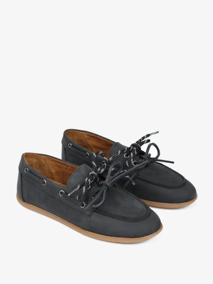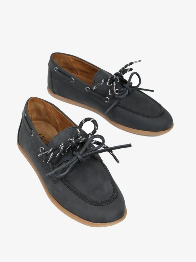 Zamszowe mokasyny z wiązaniem pozwalającym na idealne dopasowanie. Dodatkowa para czarnych sznurowadeł.