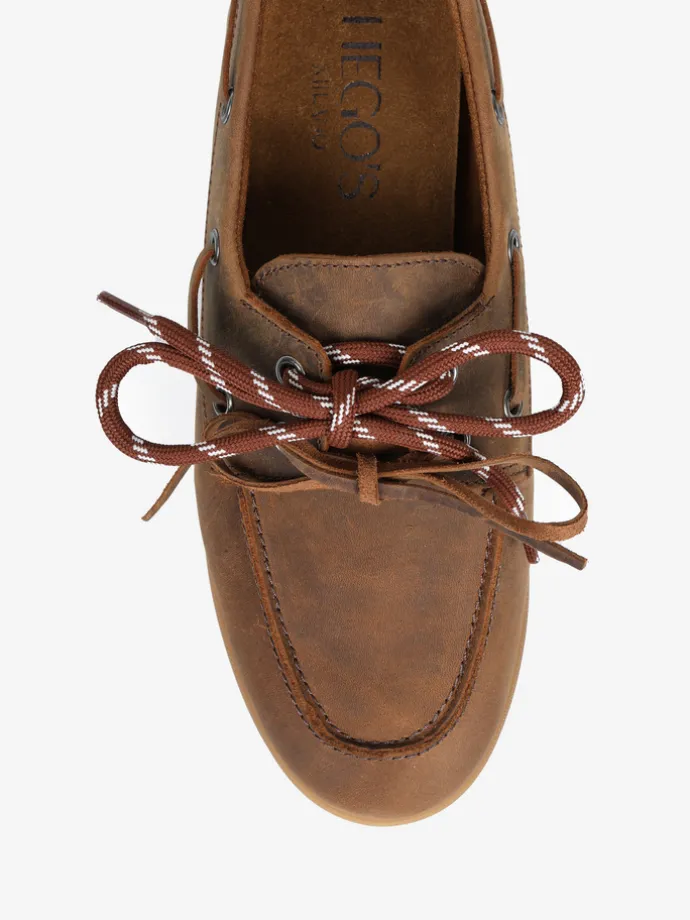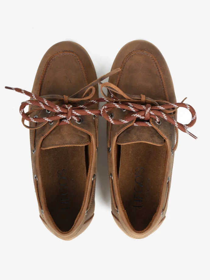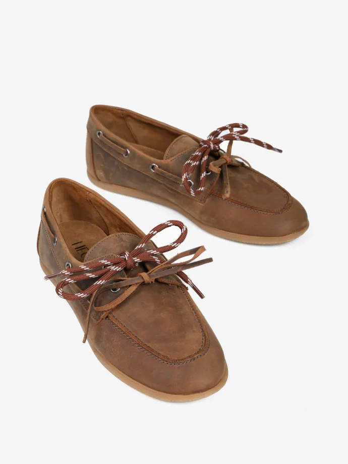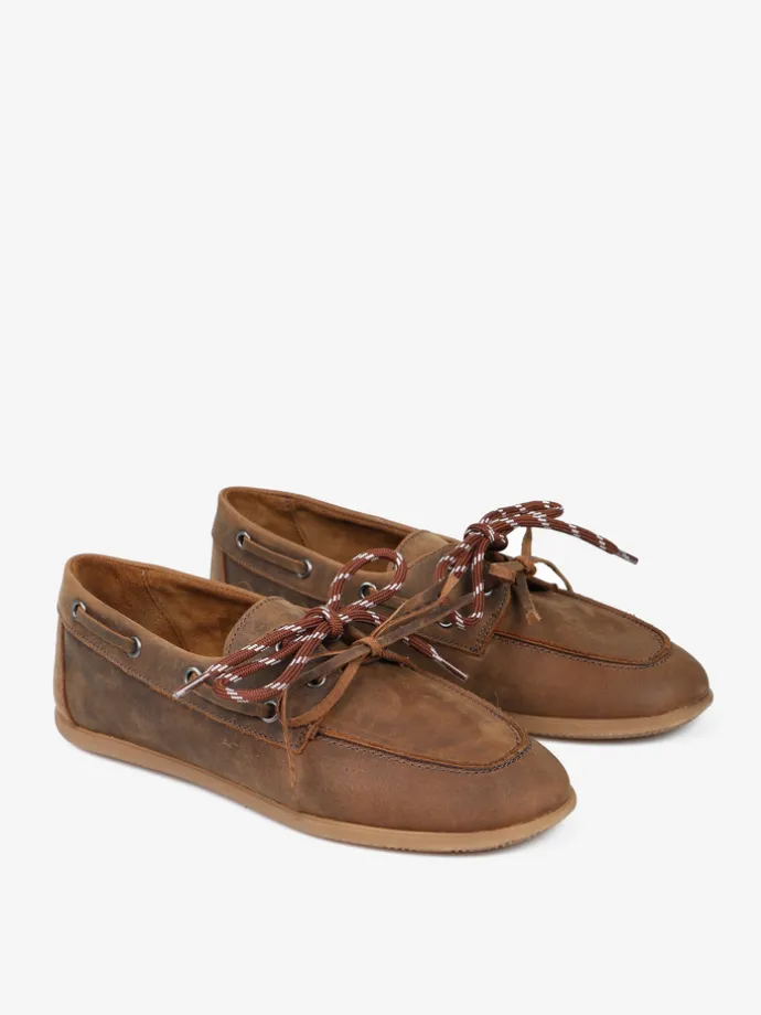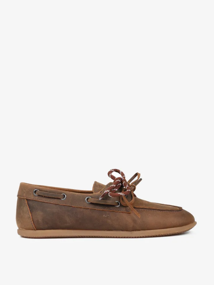 Nubukowe mokasyny z wiązaniem pozwalającym na idealne dopasowanie. Dodatkowa para rudych sznurowadeł.
