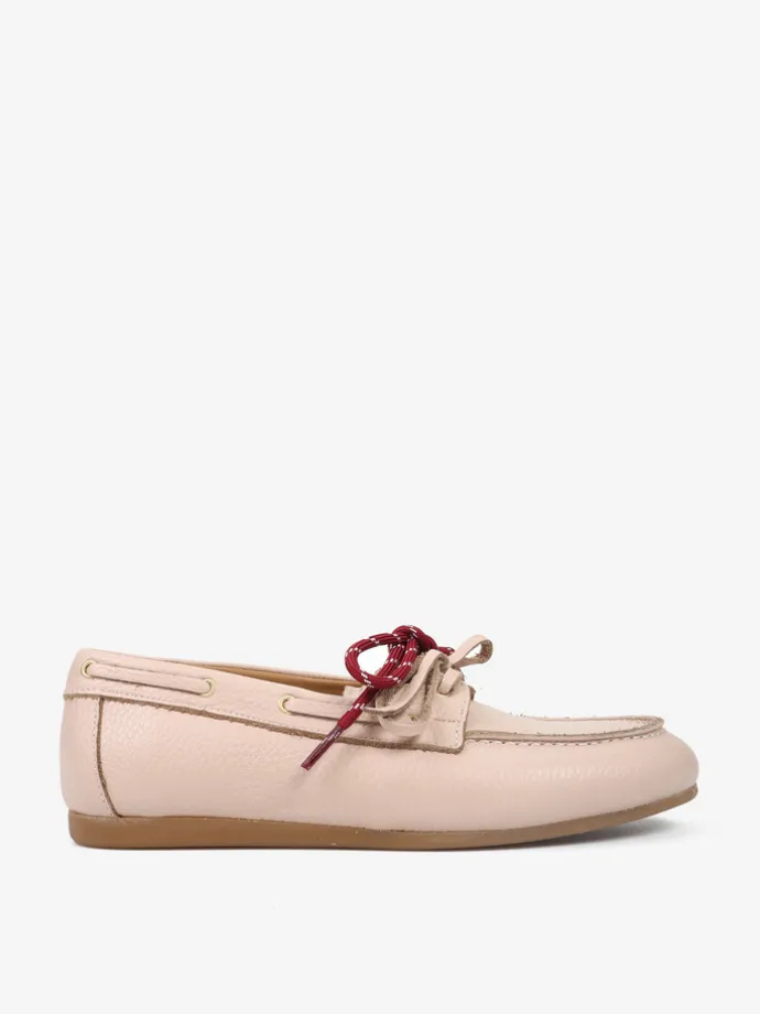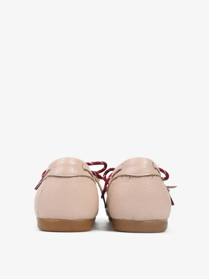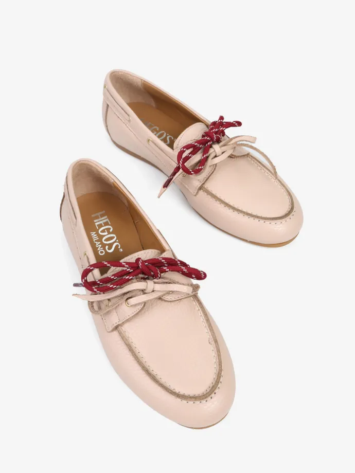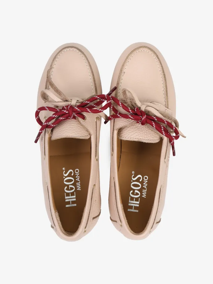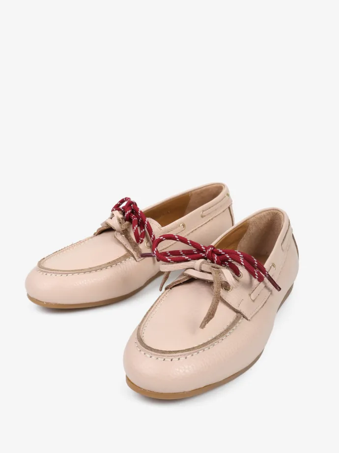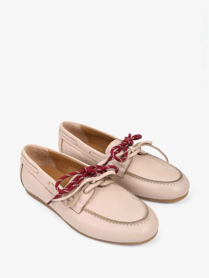 Skórzane mokasyny z wiązaniem pozwalającym na idealne dopasowanie. Dodatkowe sznurowadła w kontrastującym, bordowym kolorze.