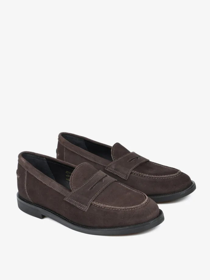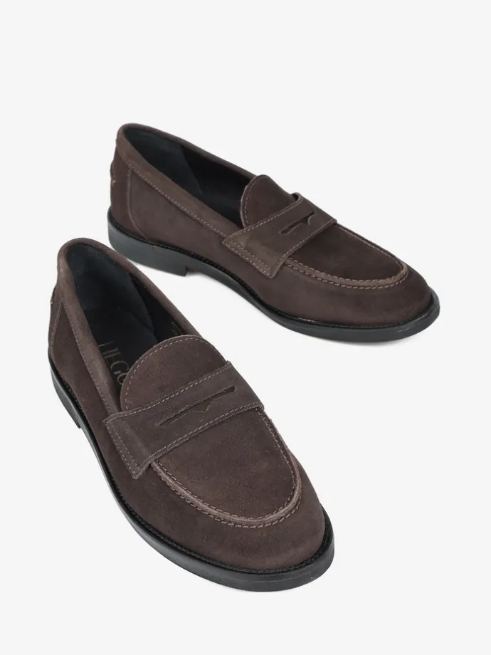 Klasyczne, zamszowe, bardzo lekkie mokasyny z ozdobną patką.