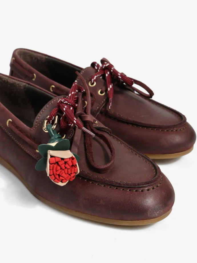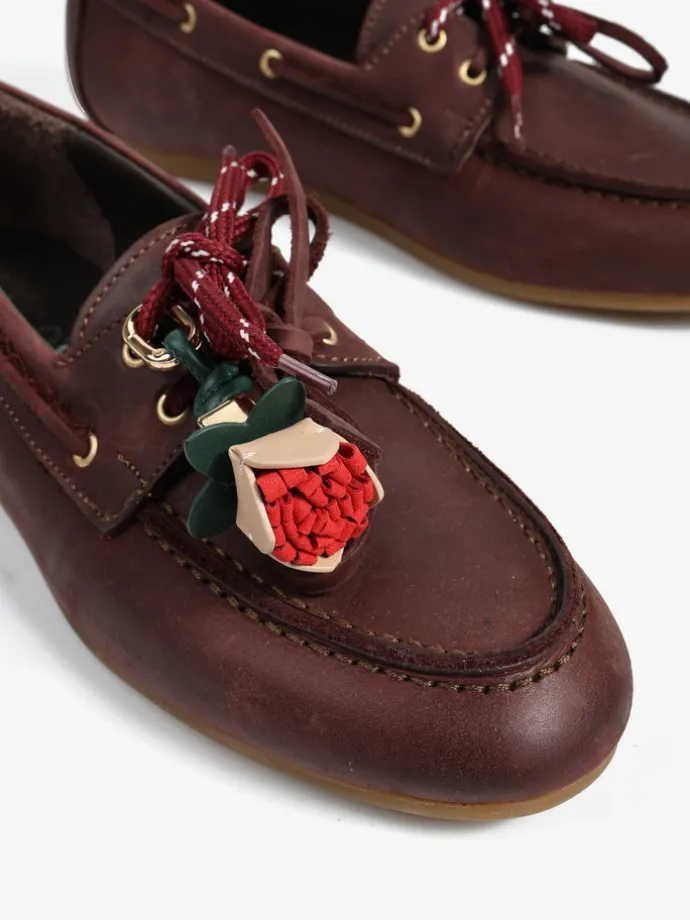 Mokasyny wykonane z nubuku z wiązaniem pozwalającym na idealne dopasowanie. W komplecie dodatkowe sznurówki. Przywieszka dostępna oddzielnie.