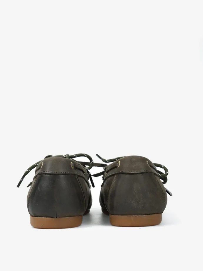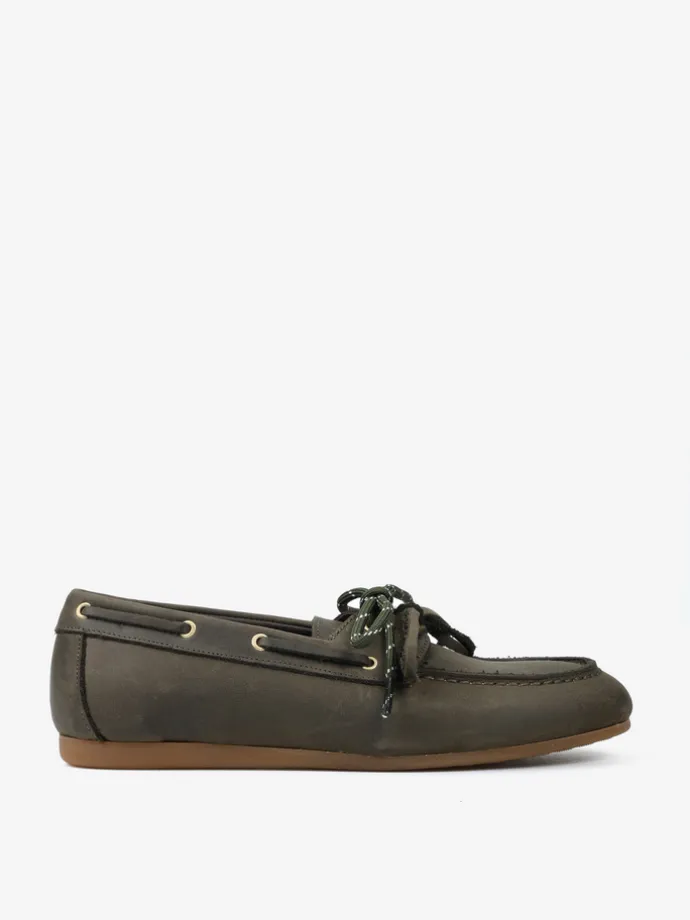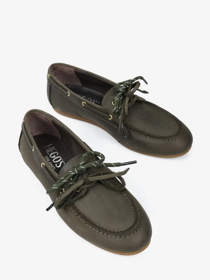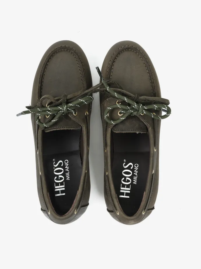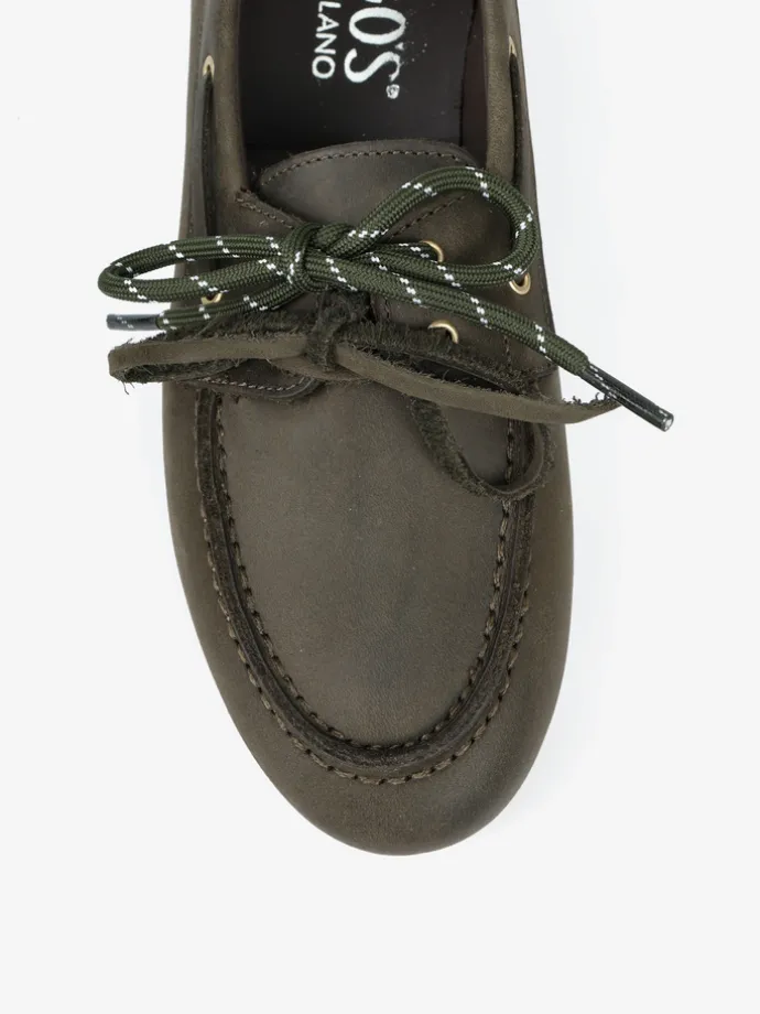 Mokasyny wykonane z nubuku z wiązaniem pozwalającym na idealne dopasowanie. Dodatkowa para zielonych sznurowadeł.
