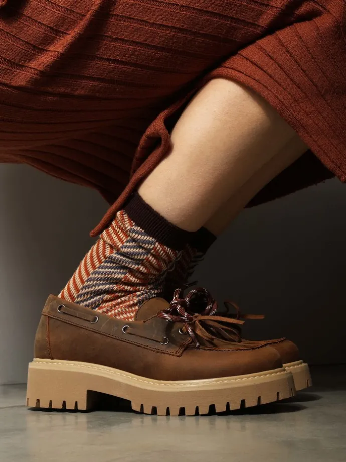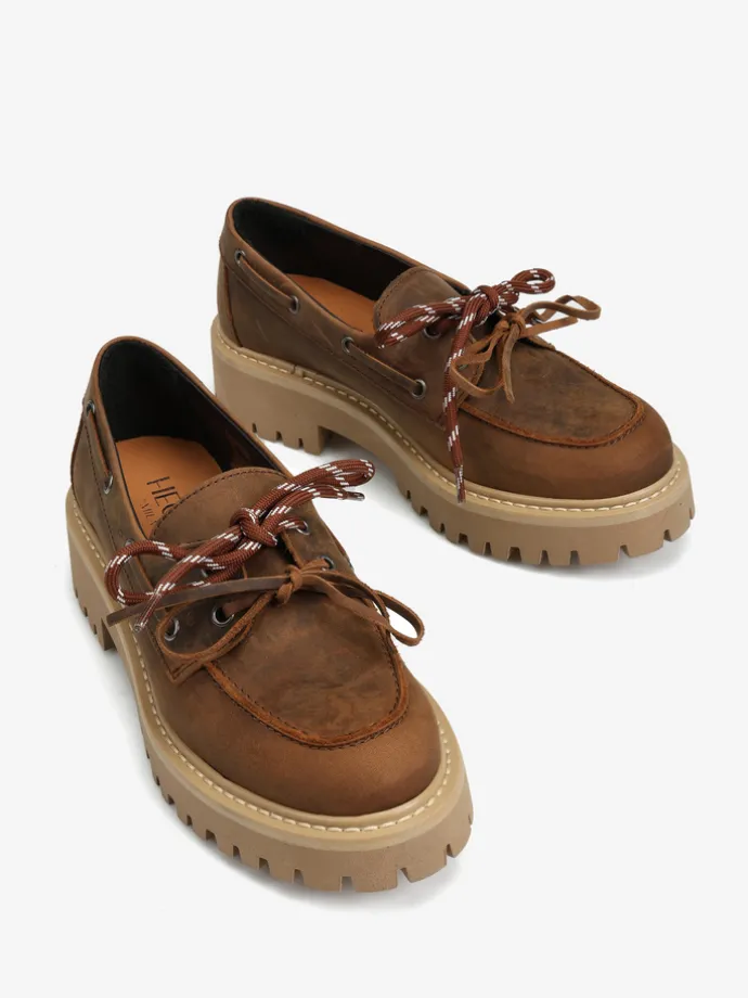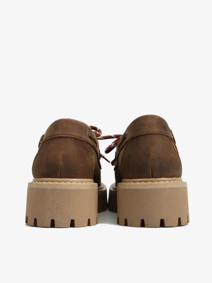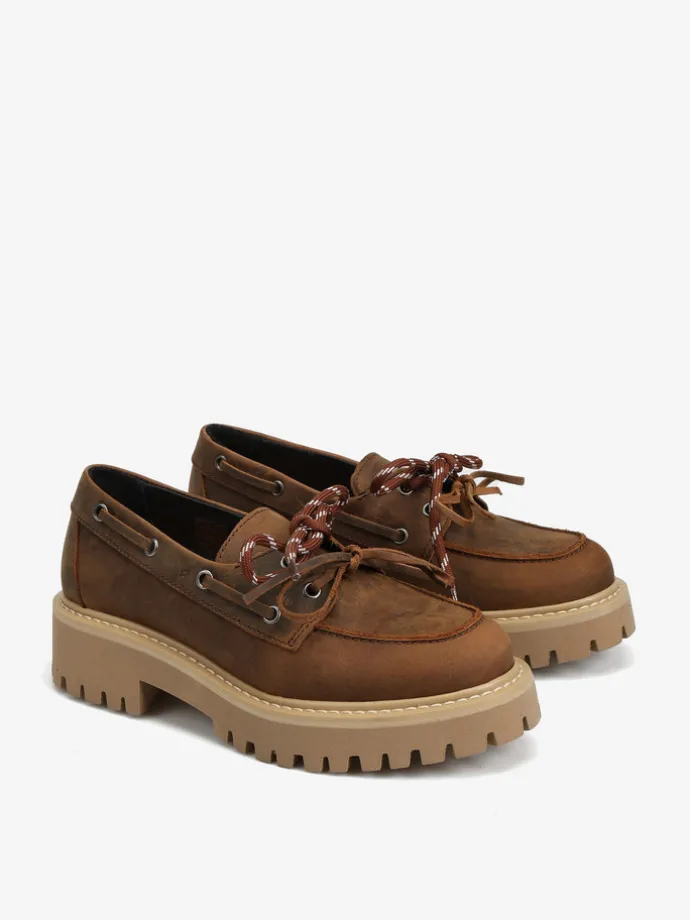 Nubukowe półbuty BOAT SHOES na platformie. Wiązanie na rzemyk i dodatkowa para sznurowadeł.