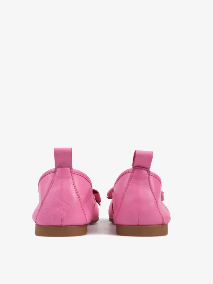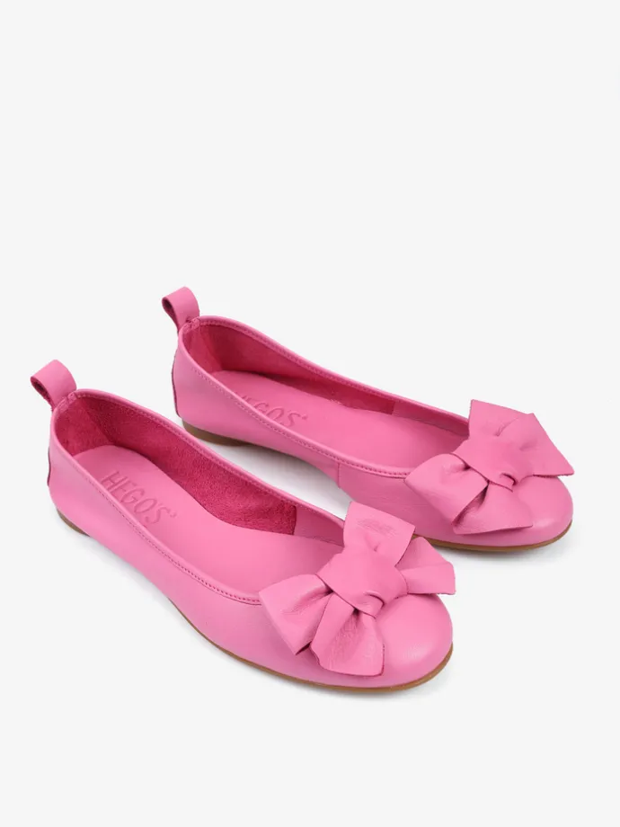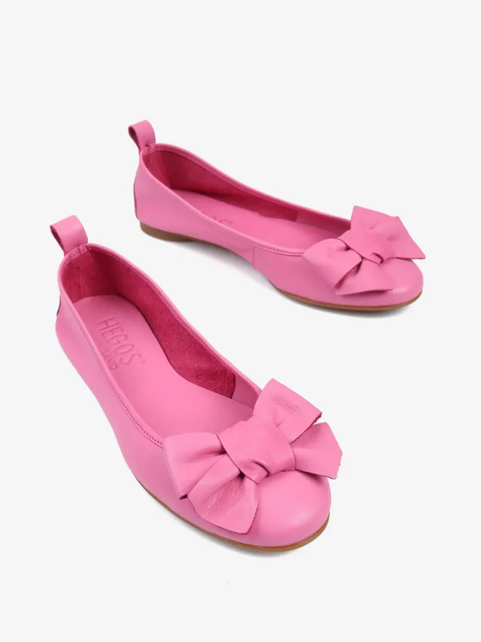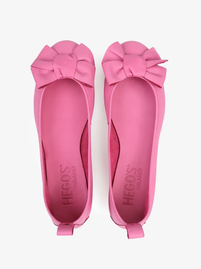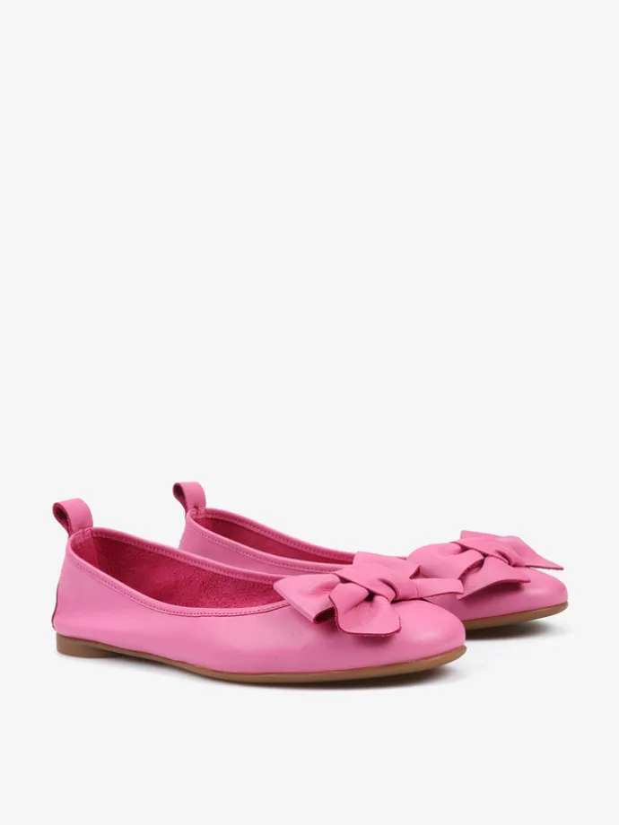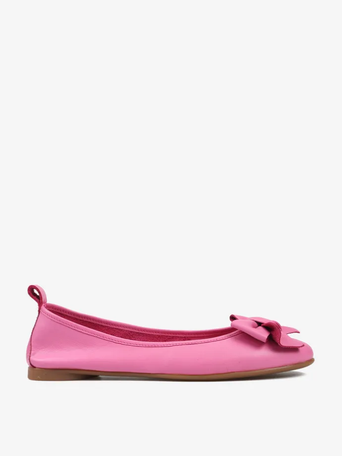 Baleriny wykonane z delikatnej, miękkiej skóry. Okrągły nosek ze skórzaną kokarda.