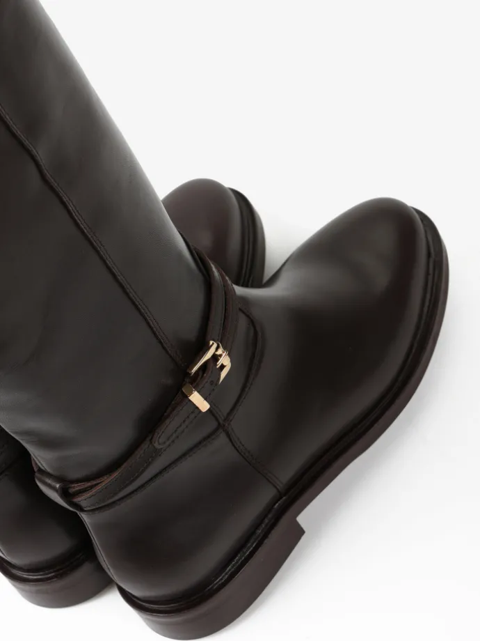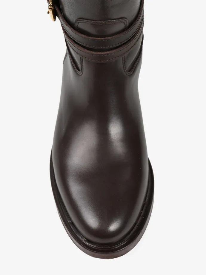 Wsuwane oficerki z ozdobnym paskiem na kostce.