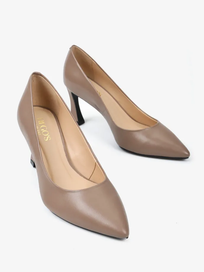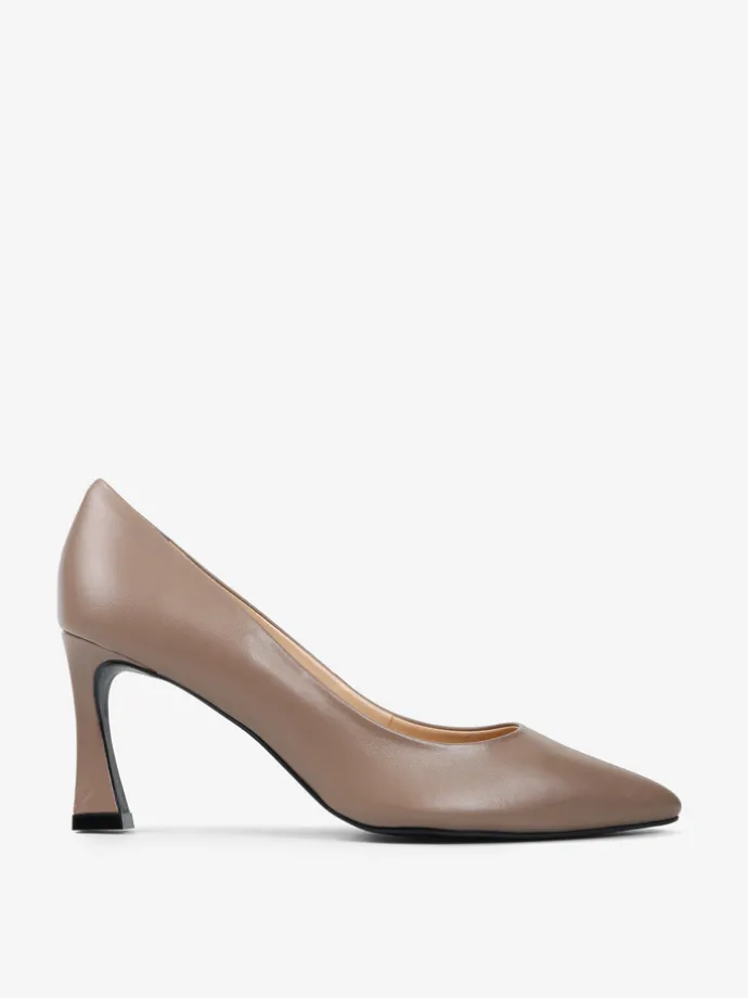 Klasyczne, beżowe szpilki z noskiem w szpic wykonane z miękkiej i delikatnej skóry.