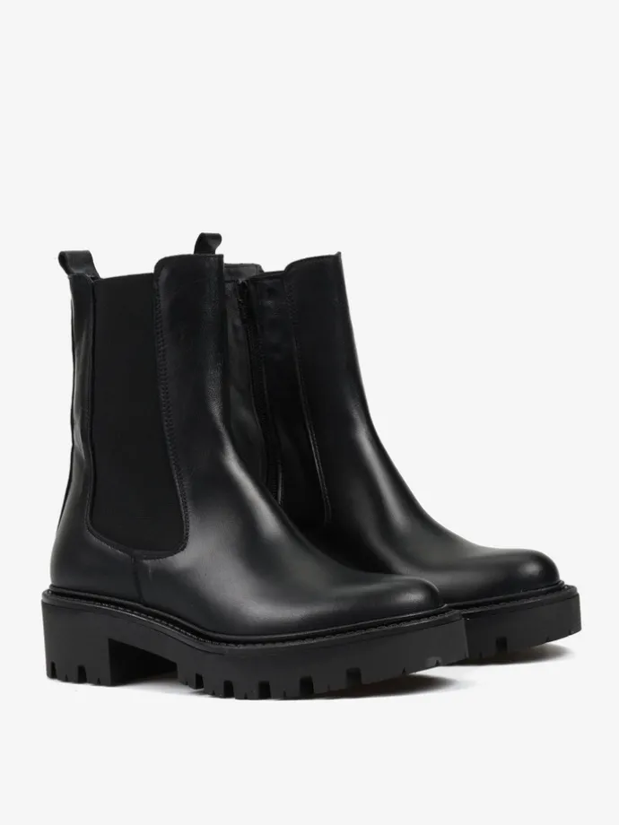 Klasyczne, skórzane sztyblety na podwyższonej podeszwie.