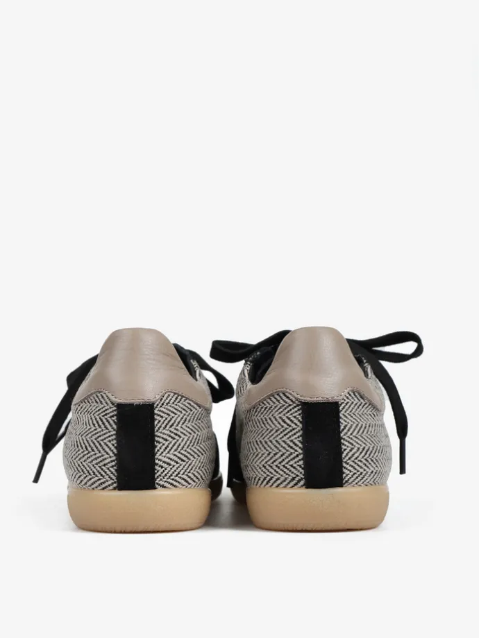 Autorskie sneakersy sygnowane literą H. Wykonane ze skóry naturalnej, zamszu i tweedu. Zaprojektowane i wyprodukowane we Włoszech.