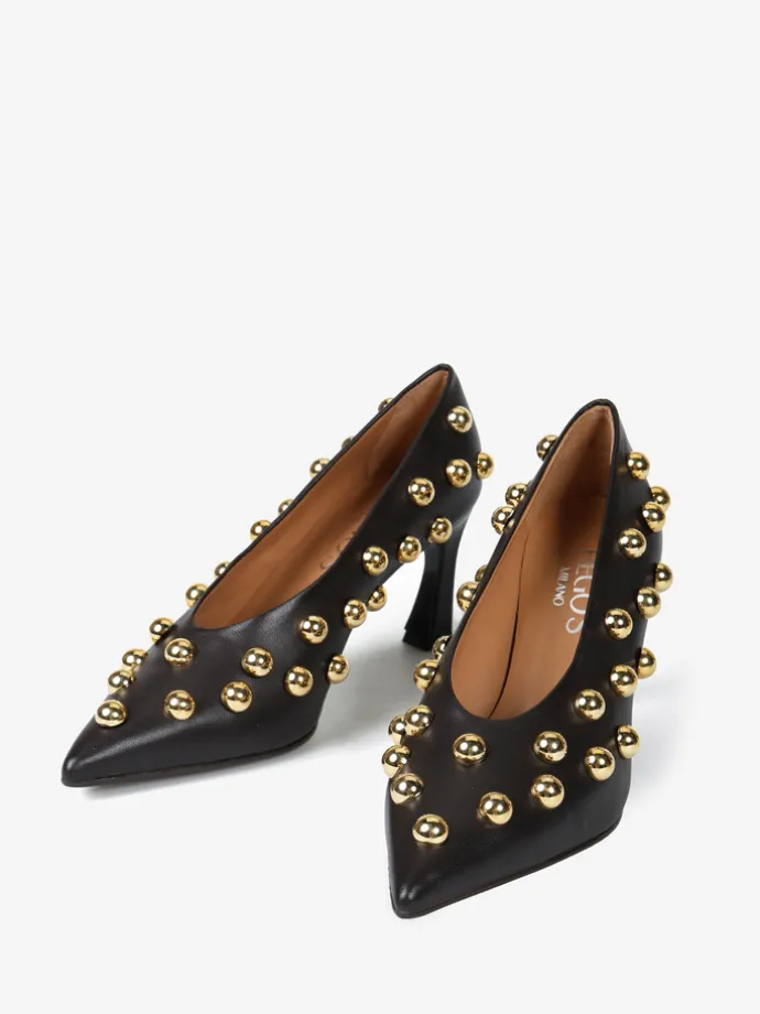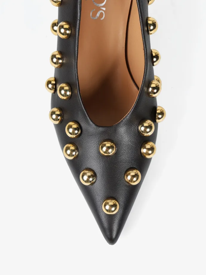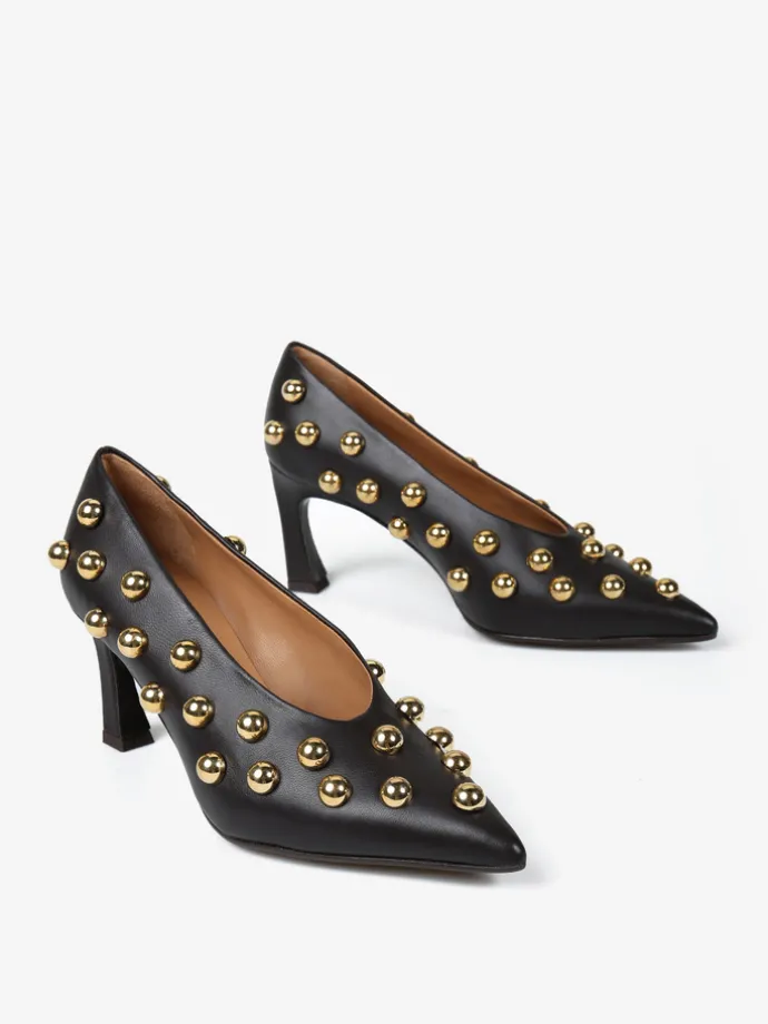 Szpilki z noskiem w szpic i ozdobnymi ćwiekami. Wykonane z miękkiej, delikatnej skóry.