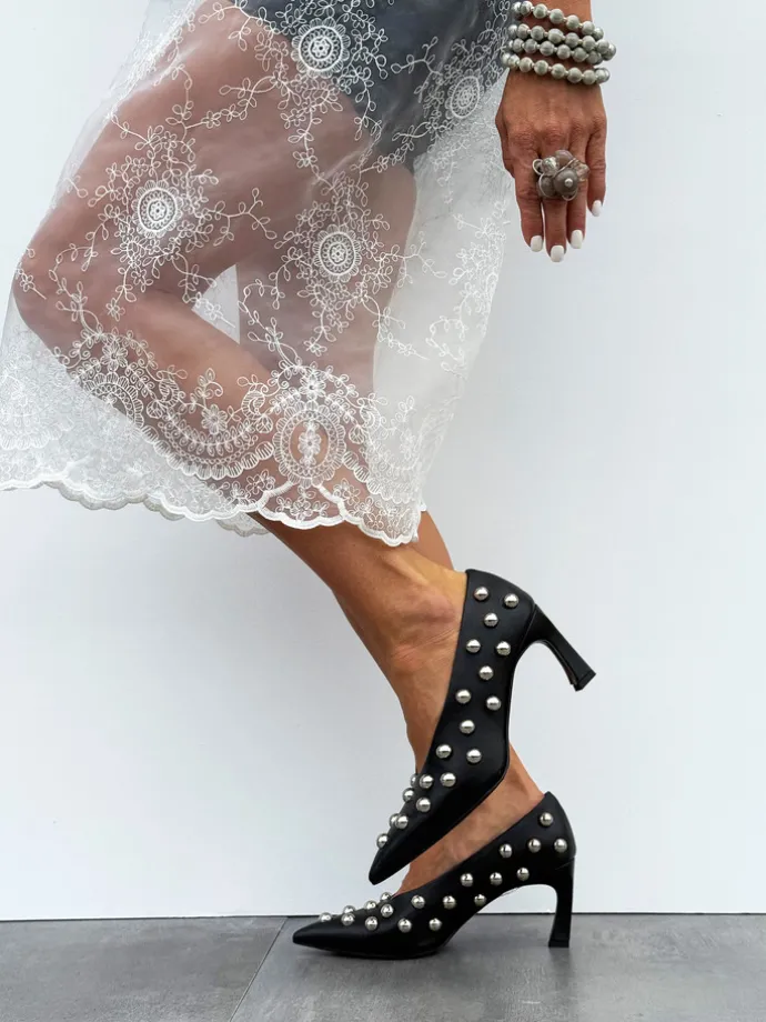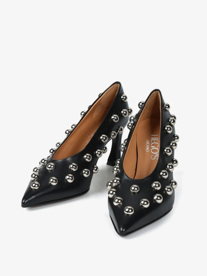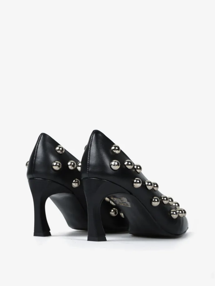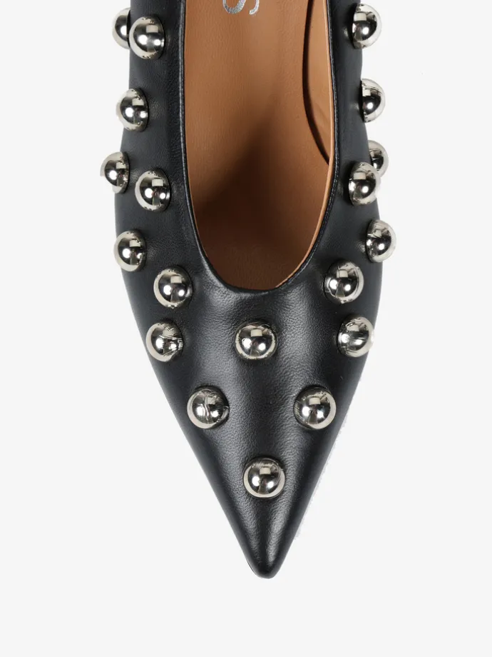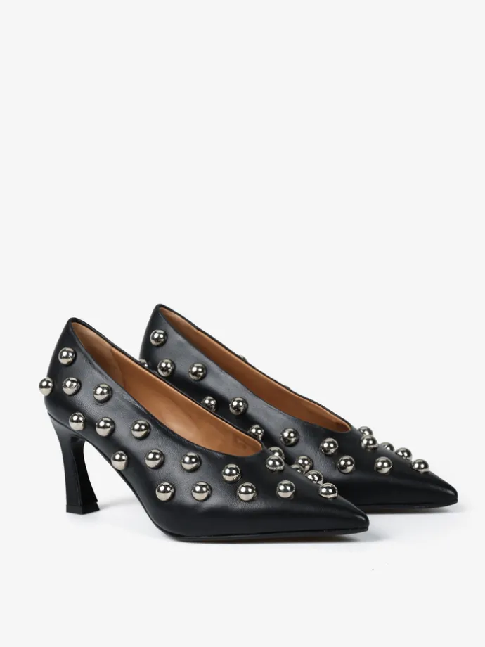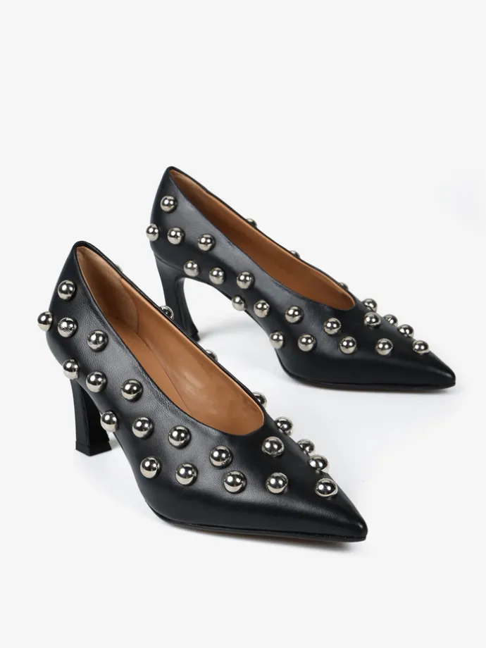 Szpilki z noskiem w szpic i ozdobnymi ćwiekami. Wykonane z miękkiej, delikatnej skóry.