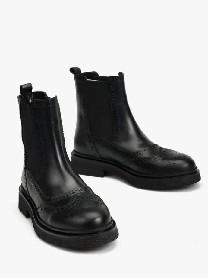 Klasyczne sztyblety z ażurowymi lamówkami i subtelnym haftem.