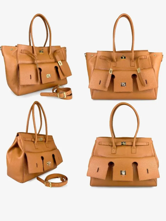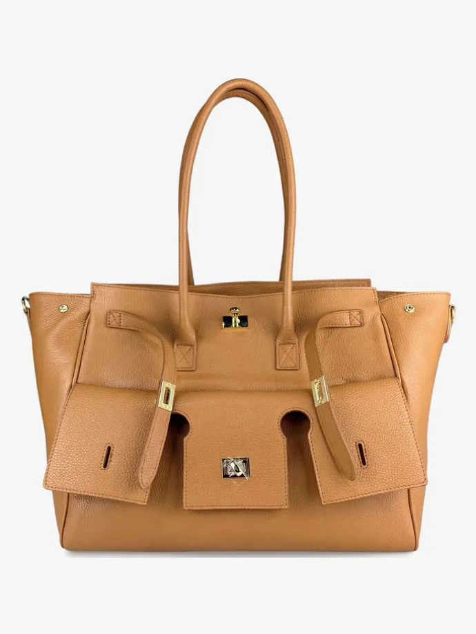 Duża, pojemna, wielofunkcyjna torba. Przednia przegródka z ozdobnymi klapami, zapinana na magnes. Boki torby mają wszyte napy, pozwalające dopasowanie kształtu torby. Dodatkowy, odczepiany pasek do noszenia na ramię.