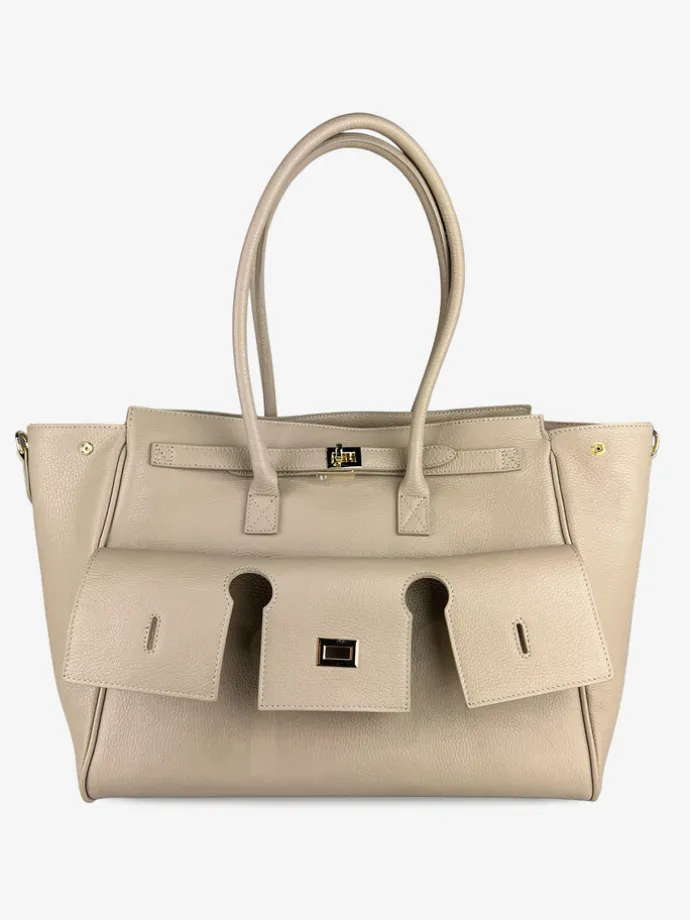 Duża, pojemna, wielofunkcyjna torba. Przednia przegródka z ozdobnymi klapami, zapinana na magnes. Boki torby mają wszyte napy, pozwalające dopasowanie kształtu torby. Dodatkowy, odczepiany pasek do noszenia na ramię.