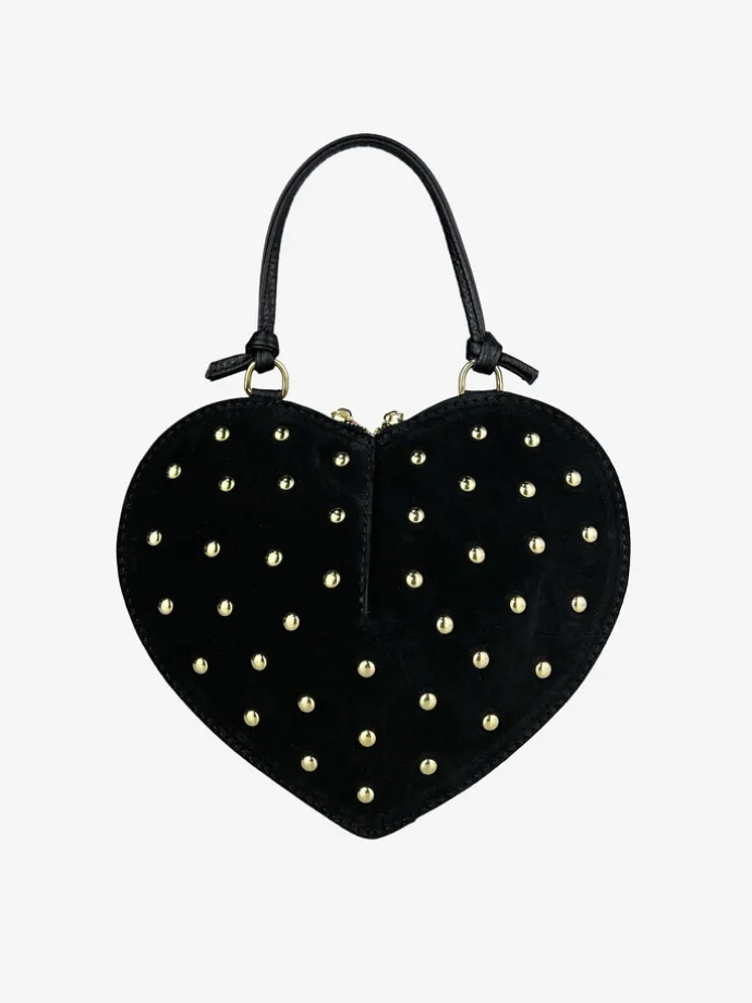 Torebka HEGO’S MILANO Cuore ma unikalny kształt serca. Wykonana jest z zamszu zdobionego ćwiekami. Dzięki dodatkowemu, regulowanemu paskowi może być noszona w ręce, jak i na ramieniu.