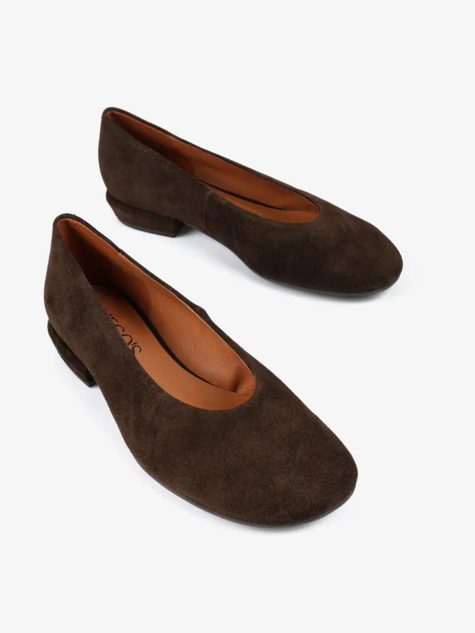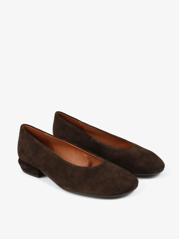 Proste baleriny na niskim obcasie. Owalne wycięcie i zabudowane brzegi.