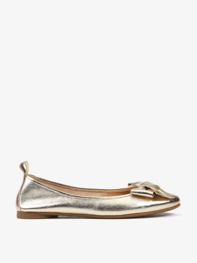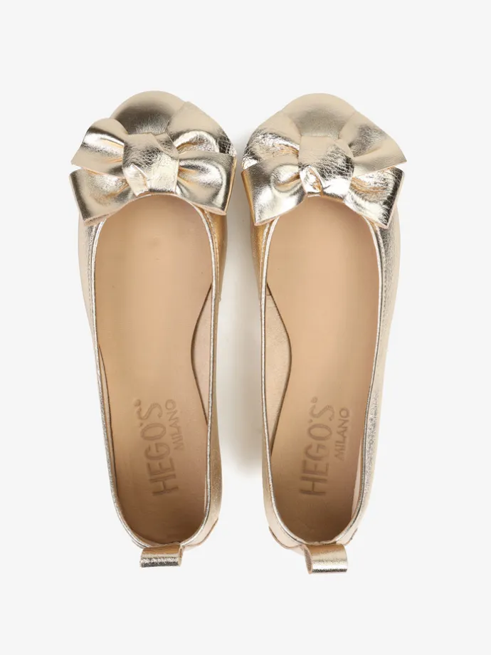 Baleriny HEGO’S Milano wykonane są z włoskiej, metalizowanej skóry. Miękka wkładka z koziej skóry oraz wyściółka bez futrówki dopasują się do stopy oraz zapewnią komfort podczas codziennego noszenia obuwia. Lekkie, miękkie i wygodne. Wykończone delikatną lamówką i minimalistyczną kokardą. To ponadczasowy model wpisujący się nie tylko w obecne Trendy.